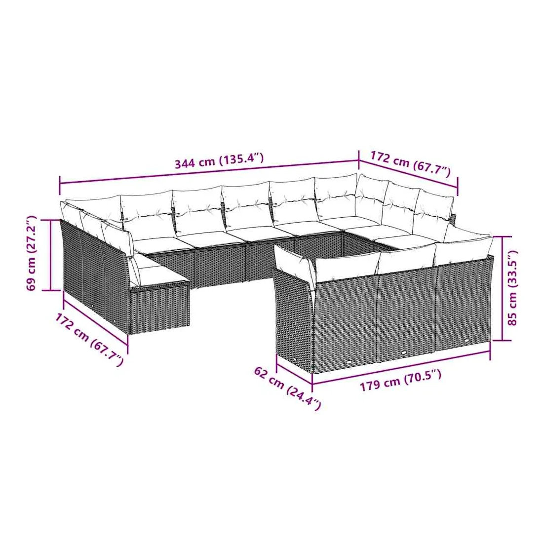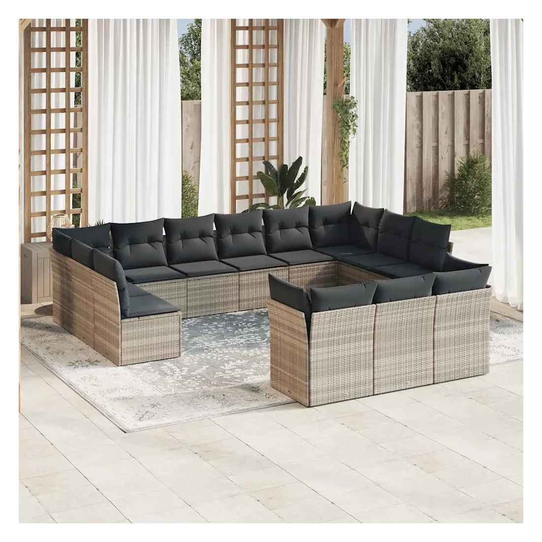 Cet ensemble de canapés de jardin est le complément parfait de votre arrière-cour, terrasse ou patio, offrant un espace confortable et accueillant pour discuter avec la famille et les amis ou simplement se détendre et profiter de l'extérieur. Matériau durable : la résine tressée, également connue sous le nom de poly rotin, est un matériau synthétique solide et nécessitant peu d'entretien qui ressemble au rotin naturel. Il est léger, facile à nettoyer et couramment utilisé pour les meubles d'extérieur en raison de sa durabilité et de ses propriétés de résistance aux intempéries.Fonction de rangement avec sac résistant à l'eau : chaque siège de jardin dispose d'un espace de rangement sous l'assise, complété par un sac résistant à l'eau pour ranger les coussins, les jouets et d'autres objets. Les sacs intérieurs sont dotés d'un couvercle et peuvent être solidement fixés aux sièges à l'aide de bandes auto-agrippantes pour plus de stabilité.Housse amovible et lavable : ces coussins de siège sont dotés de housses amovibles pour un lavage et un entretien faciles.Conception modulaire : cet ensemble de meubles d'extérieur a une conception modulaire, ce qui le rend complètement flexible et facile à déplacer, afin que vous puissiez créer un agencement de meubles d'extérieur personnalisé. Bon à savoir :Pour que vos meubles d'extérieur restent beaux, nous vous recommandons de les protéger avec une housse imperméable.