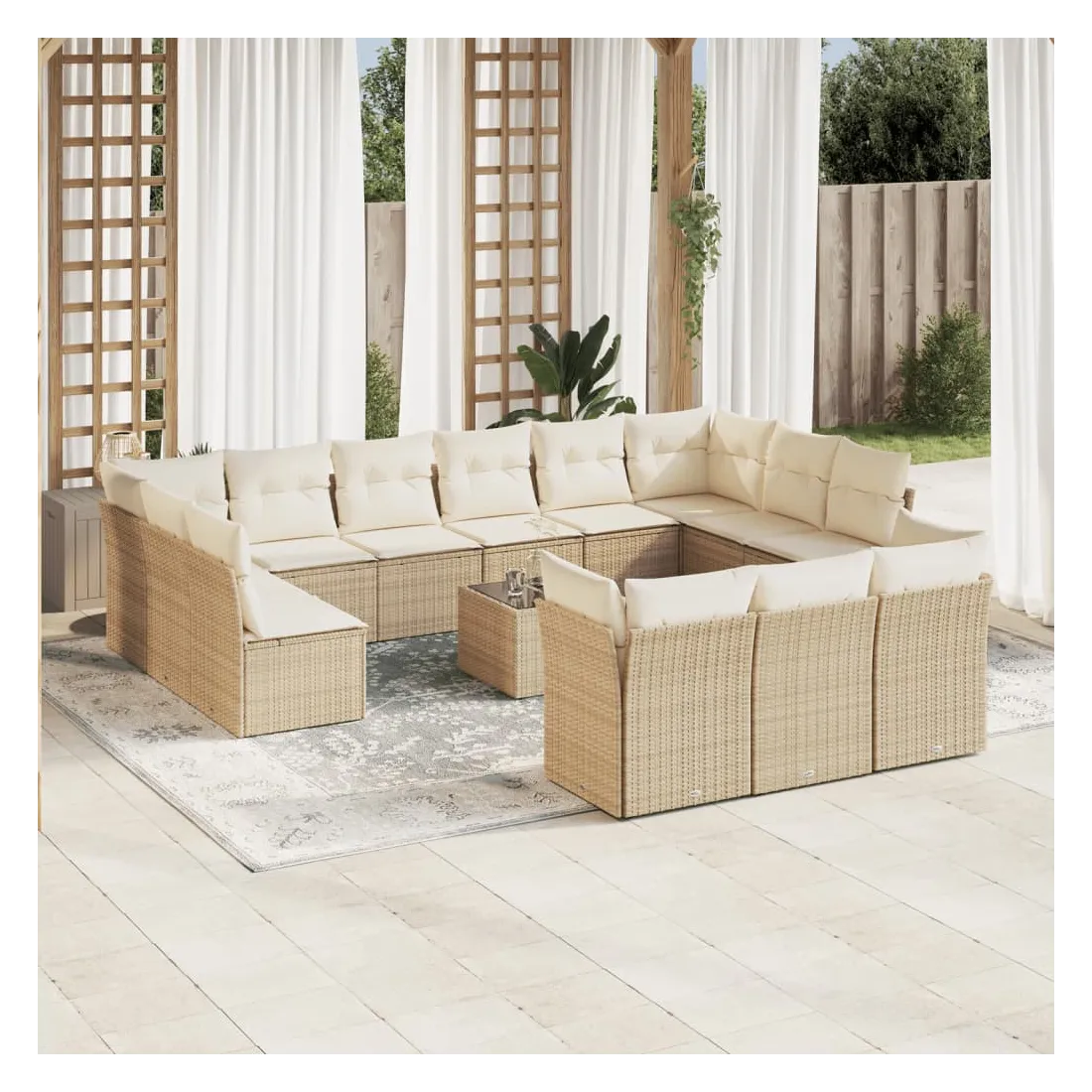 Cet ensemble de canapés de jardin est le complément parfait de votre arrière-cour, terrasse ou patio, offrant un espace confortable et accueillant pour discuter avec la famille et les amis ou simplement se détendre et profiter de l'extérieur. Matériau durable : la résine tressée, également connue sous le nom de poly rotin, est un matériau synthétique solide et nécessitant peu d'entretien qui ressemble au rotin naturel. Il est léger, facile à nettoyer et couramment utilisé pour les meubles d'extérieur en raison de sa durabilité et de ses propriétés de résistance aux intempéries.Fonction de rangement avec sac résistant à l'eau : chaque siège de jardin dispose d'un espace de rangement sous l'assise, complété par un sac résistant à l'eau pour ranger les coussins, les jouets et d'autres objets. Les sacs intérieurs sont dotés d'un couvercle et peuvent être solidement fixés aux sièges à l'aide de bandes auto-agrippantes pour plus de stabilité.Dessus en verre : le dessus de la table d'extérieur est fabriqué en verre trempé solide et durable, ce qui le rend facile à nettoyer avec un chiffon humide et ajoute une touche d'élégance à votre espace extérieur.Housse amovible et lavable : ces coussins de siège sont dotés de housses amovibles pour un lavage et un entretien faciles.Conception modulaire : cet ensemble de meubles d'extérieur a une conception modulaire, ce qui le rend complètement flexible et facile à déplacer, afin que vous puissiez créer un agencement de meubles d'extérieur personnalisé. Bon à savoir :Pour que vos meubles d'extérieur restent beaux, nous vous recommandons de les protéger avec une housse imperméable.