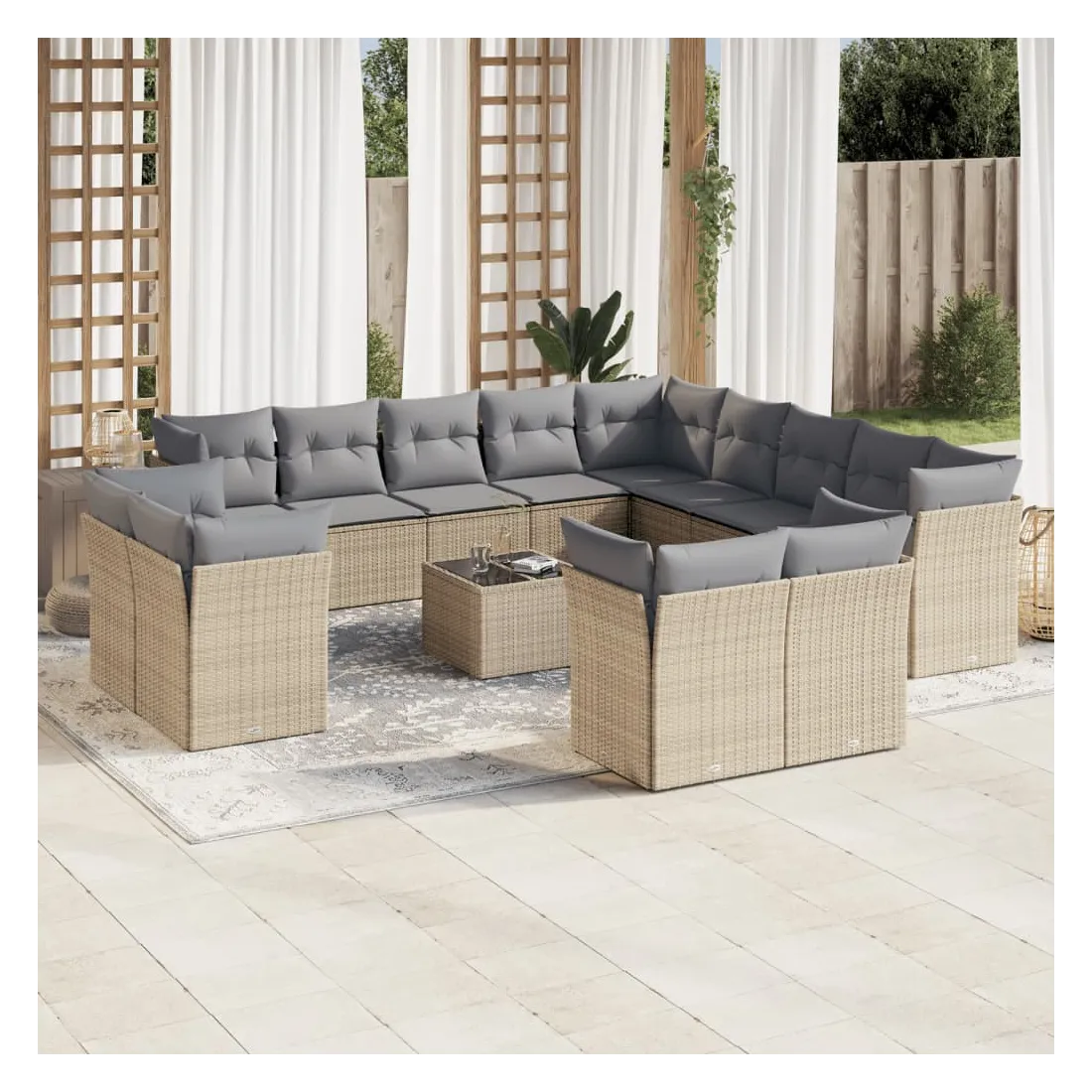 Cet ensemble de canapés de jardin est le complément parfait de votre arrière-cour, terrasse ou patio, offrant un espace confortable et accueillant pour discuter avec la famille et les amis ou simplement se détendre et profiter de l'extérieur. Matériau durable : la résine tressée, également connue sous le nom de poly rotin, est un matériau synthétique solide et nécessitant peu d'entretien qui ressemble au rotin naturel. Il est léger, facile à nettoyer et couramment utilisé pour les meubles d'extérieur en raison de sa durabilité et de ses propriétés de résistance aux intempéries.Fonction de rangement avec sac résistant à l'eau : chaque siège de jardin dispose d'un espace de rangement sous l'assise, complété par un sac résistant à l'eau pour ranger les coussins, les jouets et d'autres objets. Les sacs intérieurs sont dotés d'un couvercle et peuvent être solidement fixés aux sièges à l'aide de bandes auto-agrippantes pour plus de stabilité.Dessus en verre : le dessus de la table d'extérieur est fabriqué en verre trempé solide et durable, ce qui le rend facile à nettoyer avec un chiffon humide et ajoute une touche d'élégance à votre espace extérieur.Housse amovible et lavable : ces coussins de siège sont dotés de housses amovibles pour un lavage et un entretien faciles.Conception modulaire : cet ensemble de meubles d'extérieur a une conception modulaire, ce qui le rend complètement flexible et facile à déplacer, afin que vous puissiez créer un agencement de meubles d'extérieur personnalisé. Bon à savoir :Pour que vos meubles d'extérieur restent beaux, nous vous recommandons de les protéger avec une housse imperméable.