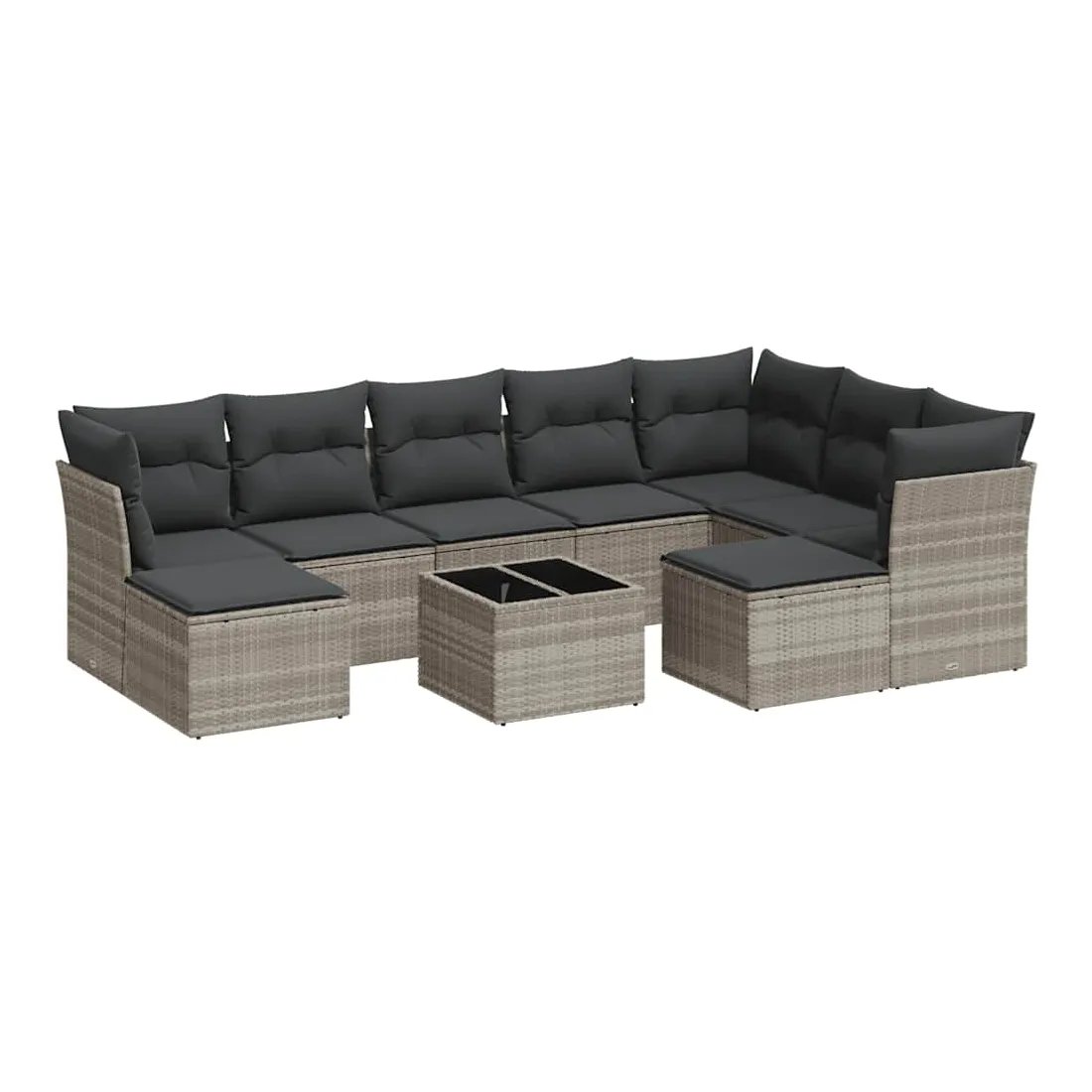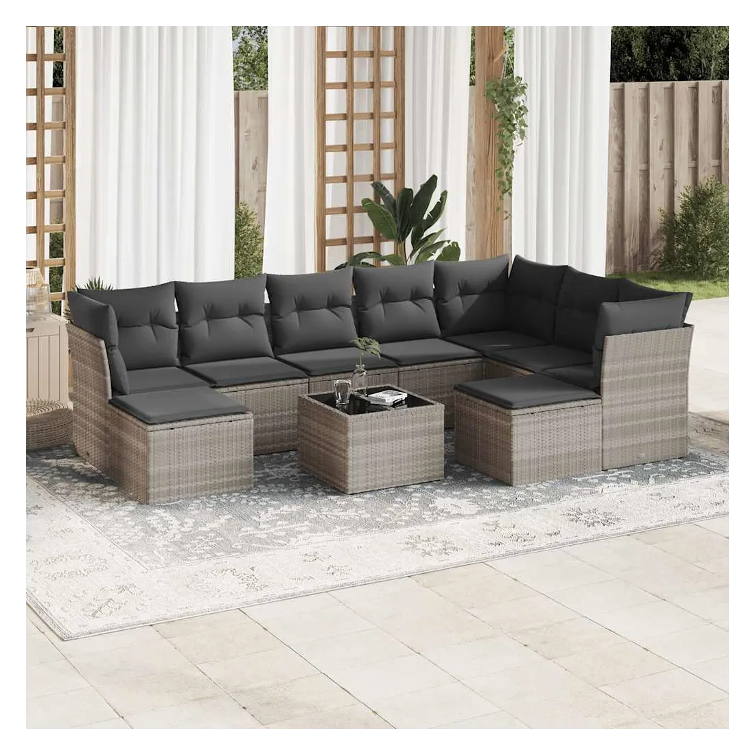 Cet ensemble de canapés de jardin est le complément parfait de votre arrière-cour, terrasse ou patio, offrant un espace confortable et accueillant pour discuter avec la famille et les amis ou simplement se détendre et profiter de l'extérieur. Matériau durable : la résine tressée, également connue sous le nom de poly rotin, est un matériau synthétique solide et nécessitant peu d'entretien qui ressemble au rotin naturel. Il est léger, facile à nettoyer et couramment utilisé pour les meubles d'extérieur en raison de sa durabilité et de ses propriétés de résistance aux intempéries.Fonction de rangement avec sac résistant à l'eau : chaque siège de jardin dispose d'un espace de rangement sous l'assise, complété par un sac résistant à l'eau pour ranger les coussins, les jouets et d'autres objets. Les sacs intérieurs sont dotés d'un couvercle et peuvent être solidement fixés aux sièges à l'aide de bandes auto-agrippantes pour plus de stabilité.Dessus en verre : le dessus de la table d'extérieur est fabriqué en verre trempé solide et durable, ce qui le rend facile à nettoyer avec un chiffon humide et ajoute une touche d'élégance à votre espace extérieur.Housse amovible et lavable : ces coussins de siège sont dotés de housses amovibles pour un lavage et un entretien faciles.Conception modulaire : cet ensemble de meubles d'extérieur a une conception modulaire, ce qui le rend complètement flexible et facile à déplacer, afin que vous puissiez créer un agencement de meubles d'extérieur personnalisé. Bon à savoir :Pour que vos meubles d'extérieur restent beaux, nous vous recommandons de les protéger avec une housse imperméable.