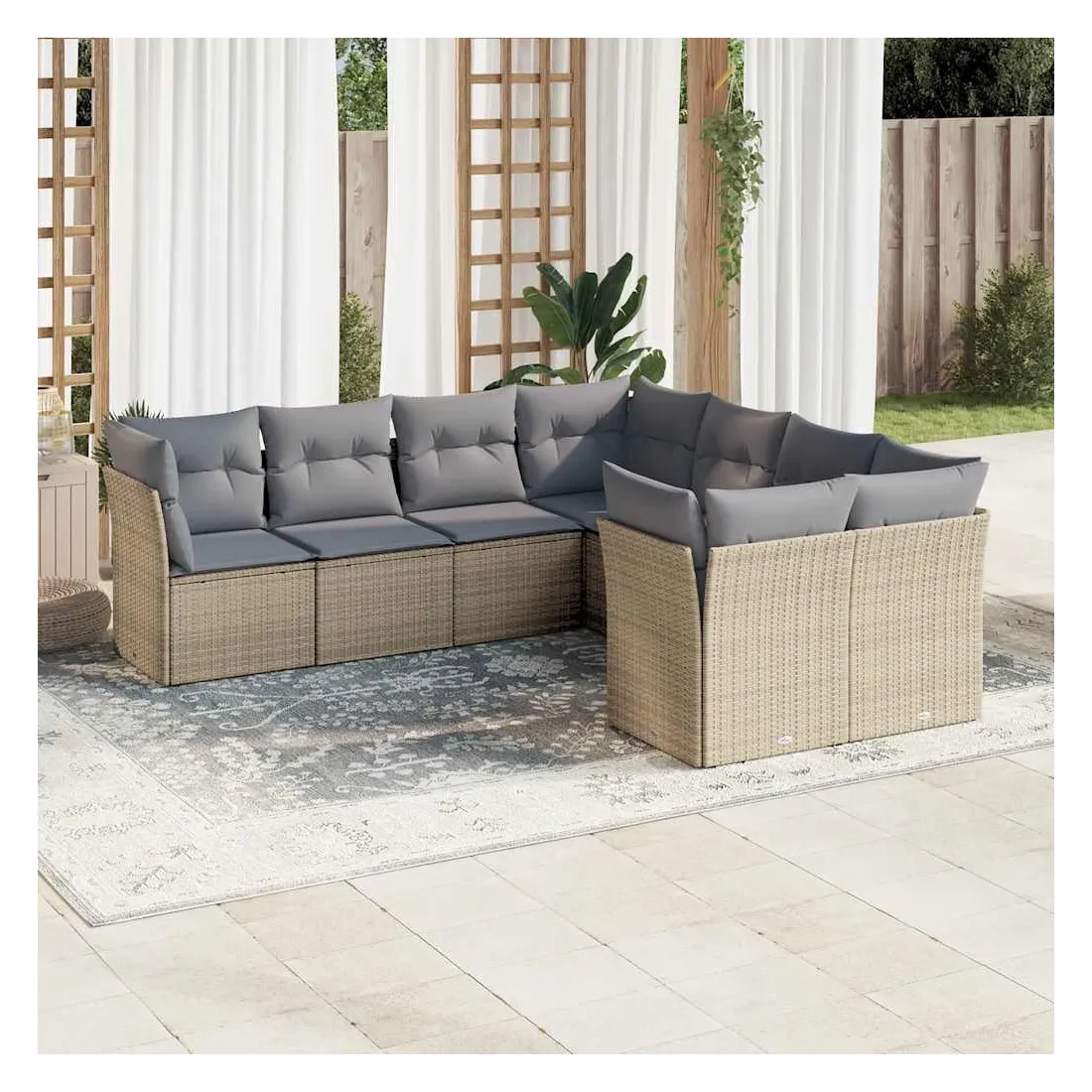 Cet ensemble de canapés de jardin est le complément parfait de votre arrière-cour, terrasse ou patio, offrant un espace confortable et accueillant pour discuter avec la famille et les amis ou simplement se détendre et profiter de l'extérieur. Matériau durable : la résine tressée, également connue sous le nom de poly rotin, est un matériau synthétique solide et nécessitant peu d'entretien qui ressemble au rotin naturel. Il est léger, facile à nettoyer et couramment utilisé pour les meubles d'extérieur en raison de sa durabilité et de ses propriétés de résistance aux intempéries.Fonction de rangement avec sac résistant à l'eau : chaque siège de jardin dispose d'un espace de rangement sous l'assise, complété par un sac résistant à l'eau pour ranger les coussins, les jouets et d'autres objets. Les sacs intérieurs sont dotés d'un couvercle et peuvent être solidement fixés aux sièges à l'aide de bandes auto-agrippantes pour plus de stabilité.Housse amovible et lavable : ces coussins de siège sont dotés de housses amovibles pour un lavage et un entretien faciles.Conception modulaire : cet ensemble de meubles d'extérieur a une conception modulaire, ce qui le rend complètement flexible et facile à déplacer, afin que vous puissiez créer un agencement de meubles d'extérieur personnalisé. Bon à savoir :Pour que vos meubles d'extérieur restent beaux, nous vous recommandons de les protéger avec une housse imperméable.