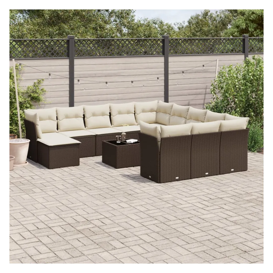 Cet ensemble de canapés de jardin est le complément parfait de votre arrière-cour, terrasse ou patio, offrant un espace confortable et accueillant pour discuter avec la famille et les amis ou simplement se détendre et profiter de l'extérieur. Matériau durable : la résine tressée, également connue sous le nom de poly rotin, est un matériau synthétique solide et nécessitant peu d'entretien qui ressemble au rotin naturel. Il est léger, facile à nettoyer et couramment utilisé pour les meubles d'extérieur en raison de sa durabilité et de ses propriétés de résistance aux intempéries.Fonction de rangement avec sac résistant à l'eau : chaque siège de jardin dispose d'un espace de rangement sous l'assise, complété par un sac résistant à l'eau pour ranger les coussins, les jouets et d'autres objets. Les sacs intérieurs sont dotés d'un couvercle et peuvent être solidement fixés aux sièges à l'aide de bandes auto-agrippantes pour plus de stabilité.Dessus en verre : le dessus de la table d'extérieur est fabriqué en verre trempé solide et durable, ce qui le rend facile à nettoyer avec un chiffon humide et ajoute une touche d'élégance à votre espace extérieur.Housse amovible et lavable : ces coussins de siège sont dotés de housses amovibles pour un lavage et un entretien faciles.Conception modulaire : cet ensemble de meubles d'extérieur a une conception modulaire, ce qui le rend complètement flexible et facile à déplacer, afin que vous puissiez créer un agencement de meubles d'extérieur personnalisé. Bon à savoir :Pour que vos meubles d'extérieur restent beaux, nous vous recommandons de les protéger avec une housse imperméable.