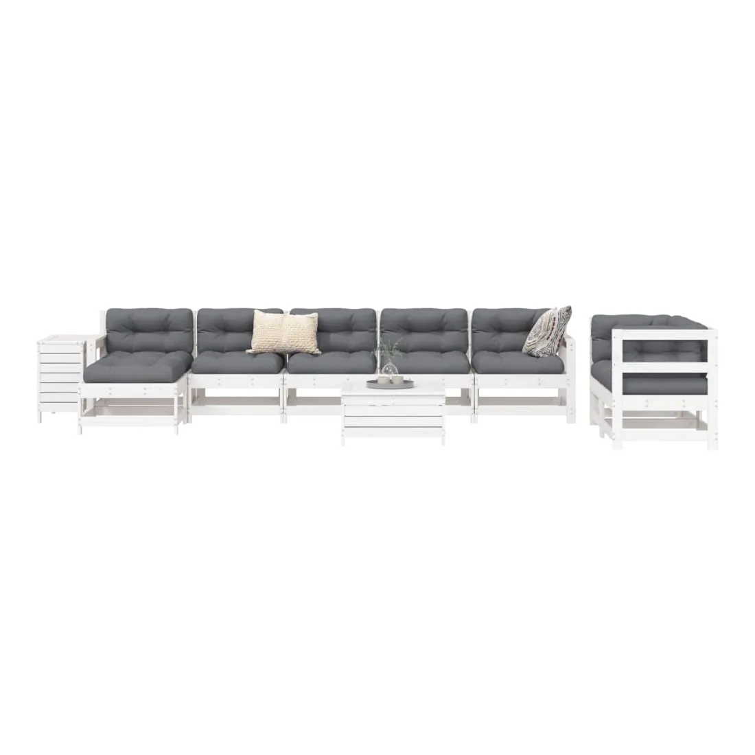vidaXLCet ensemble de salon de jardin en bois avec un design à lattes sera un excellent complément à votre jardin, patio ou terrasse pour profiter d'un moment agréable avec votre famille ou vos amis. Matériau robuste et durable : le bois de pin massif est connu pour sa résistance et sa durabilité. Ses grains droits et ses nœuds distinctifs contribuent à son charme rustique. Bien ventilé et prévention de l'accumulation d'eau : la conception à lattes favorise une circulation optimale de l'air et empêche efficacement l'accumulation d'eau, assurant ainsi une assise sèche et confortable. Utilisation polyvalente : le repose-pied de jardin peut non seulement être utilisé pour s'asseoir ou se détendre, mais il peut également être utilisé comme table basse pour contenir vos boissons, votre nourriture et d'autres décorations. Table pratique : la table de jardin vous offre un endroit pratique pour atteindre facilement vos essentiels. Conception modulaire : cet ensemble de meubles d'extérieur a une conception modulaire, ce qui le rend complètement flexible et facile à déplacer, afin que vous puissiez créer un agencement de meubles d'extérieur personnalisé. Bon à savoir :Pour que vos meubles d'extérieur restent beaux, nous vous recommandons de les protéger avec une housse imperméable.