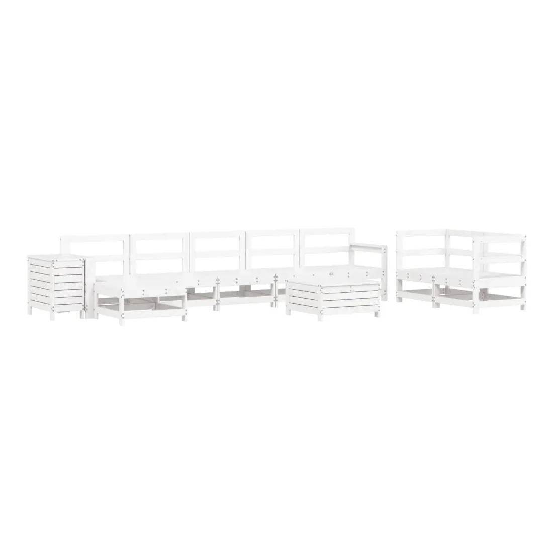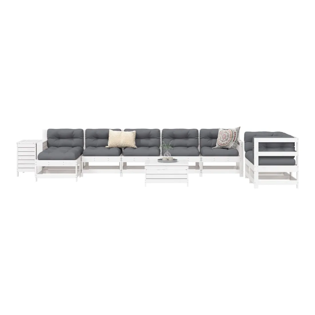 vidaXLCet ensemble de salon de jardin en bois avec un design à lattes sera un excellent complément à votre jardin, patio ou terrasse pour profiter d'un moment agréable avec votre famille ou vos amis. Matériau robuste et durable : le bois de pin massif est connu pour sa résistance et sa durabilité. Ses grains droits et ses nœuds distinctifs contribuent à son charme rustique. Bien ventilé et prévention de l'accumulation d'eau : la conception à lattes favorise une circulation optimale de l'air et empêche efficacement l'accumulation d'eau, assurant ainsi une assise sèche et confortable. Utilisation polyvalente : le repose-pied de jardin peut non seulement être utilisé pour s'asseoir ou se détendre, mais il peut également être utilisé comme table basse pour contenir vos boissons, votre nourriture et d'autres décorations. Table pratique : la table de jardin vous offre un endroit pratique pour atteindre facilement vos essentiels. De plus, le canapé avec accoudoirs est doté d'une table d'appoint pliable avec des ressorts à gaz sur l'accoudoir pour garder vos objets à portée de main. Conception modulaire : cet ensemble de meubles d'extérieur a une conception modulaire, ce qui le rend complètement flexible et facile à déplacer, afin que vous puissiez créer un agencement de meubles d'extérieur personnalisé. Bon à savoir :Pour que vos meubles d'extérieur restent beaux, nous vous recommandons de les protéger avec une housse imperméable.