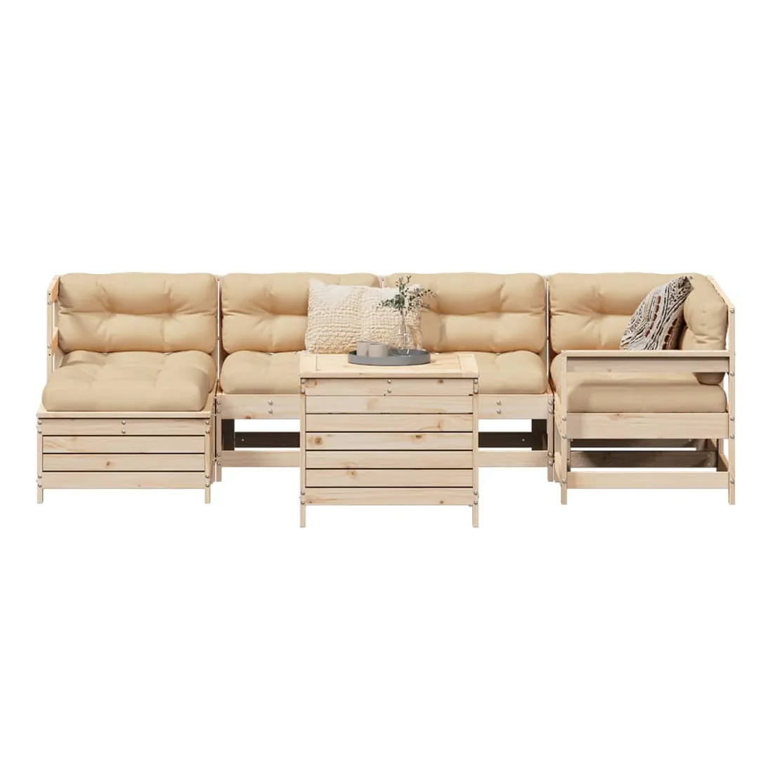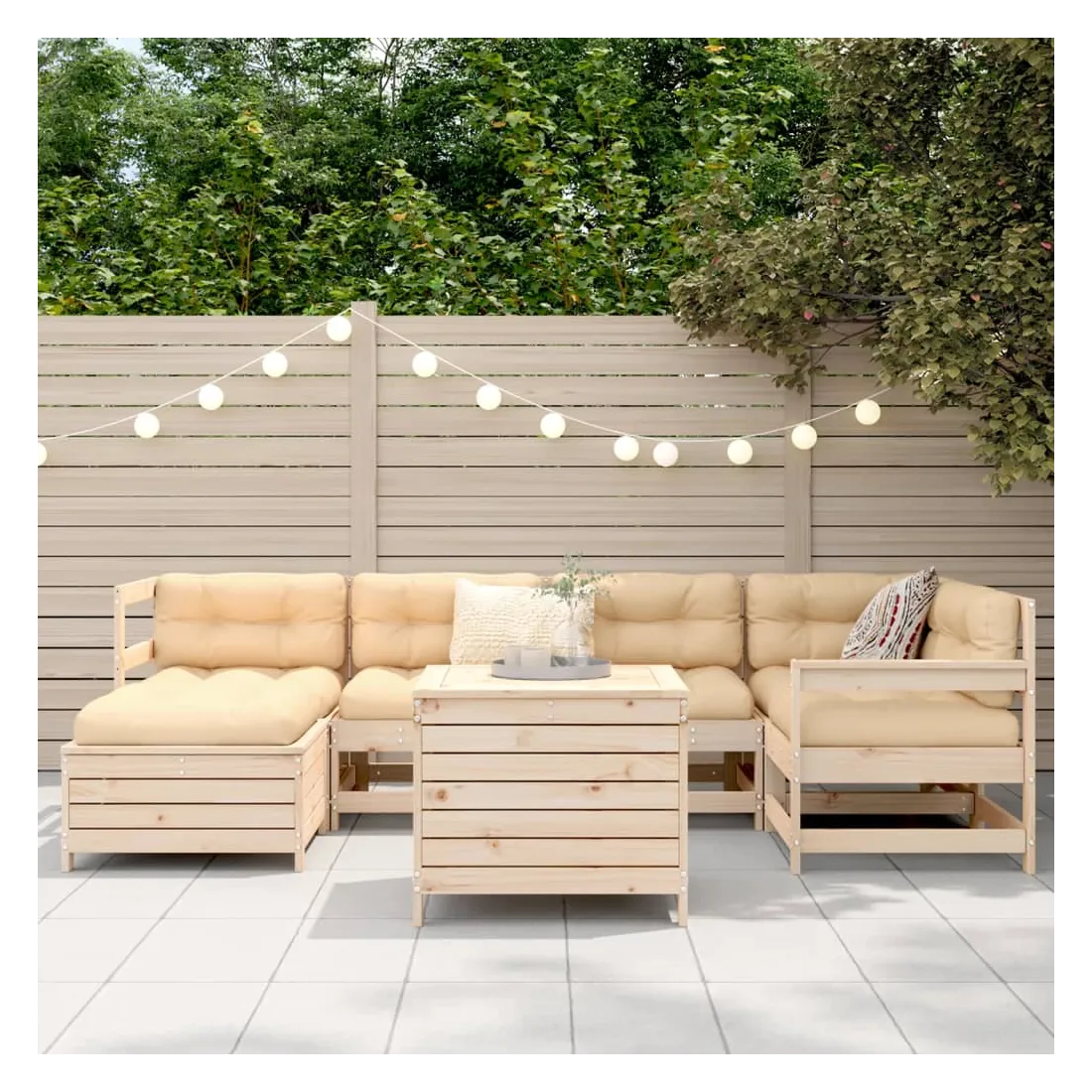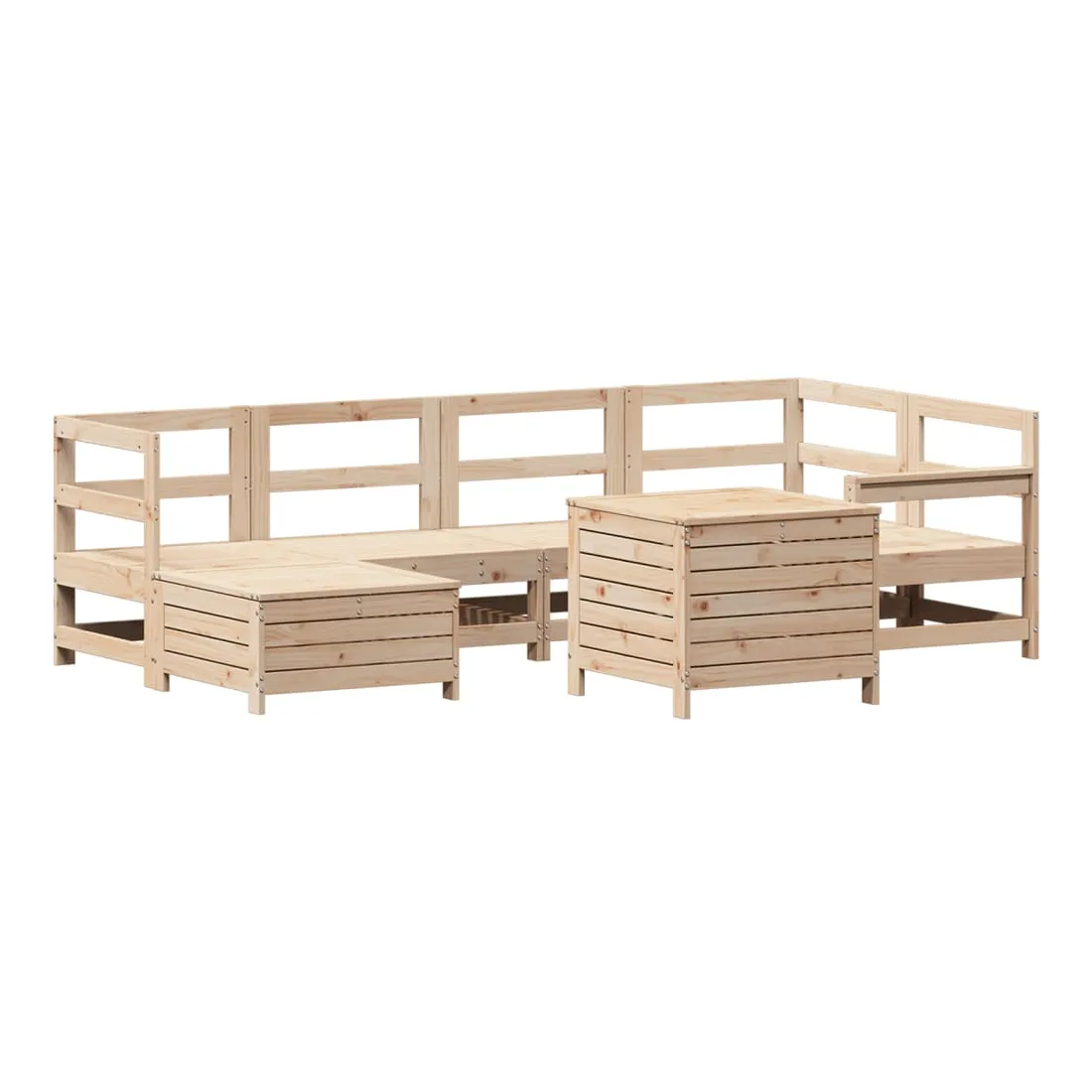 vidaXLCet ensemble de salon de jardin en bois avec un design à lattes sera un excellent complément à votre jardin, patio ou terrasse pour profiter d'un moment agréable avec votre famille ou vos amis. Matériau robuste et durable : le bois de pin massif est connu pour sa résistance et sa durabilité. Ses grains droits et ses nœuds distinctifs contribuent à son charme rustique. Bien ventilé et prévention de l'accumulation d'eau : la conception à lattes favorise une circulation optimale de l'air et empêche efficacement l'accumulation d'eau, assurant ainsi une assise sèche et confortable. Utilisation polyvalente : le repose-pied de jardin peut non seulement être utilisé pour s'asseoir ou se détendre, mais il peut également être utilisé comme table basse pour contenir vos boissons, votre nourriture et d'autres décorations. Table pratique : la table de jardin vous offre un endroit pratique pour atteindre facilement vos essentiels. Conception modulaire : cet ensemble de meubles d'extérieur a une conception modulaire, ce qui le rend complètement flexible et facile à déplacer, afin que vous puissiez créer un agencement de meubles d'extérieur personnalisé. Bon à savoir :Pour que vos meubles d'extérieur restent beaux, nous vous recommandons de les protéger avec une housse imperméable.