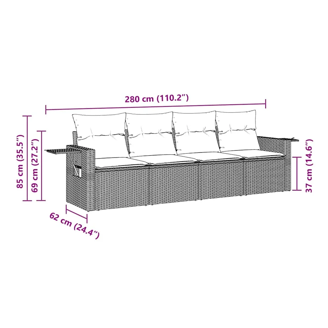 Cet ensemble de canapés de jardin est le complément parfait de votre arrière-cour, terrasse ou patio, offrant un espace confortable et accueillant pour discuter avec la famille et les amis ou simplement se détendre et profiter de l'extérieur. Matériau durable : la résine tressée, également connue sous le nom de poly rotin, est un matériau synthétique solide et nécessitant peu d'entretien qui ressemble au rotin naturel. Il est léger, facile à nettoyer et couramment utilisé pour les meubles d'extérieur en raison de sa durabilité et de ses propriétés de résistance aux intempéries.Fonction de rangement avec sac résistant à l'eau : le mobilier de jardin dispose d'un espace de rangement sous l'assise, complété par un sac résistant à l'eau pour ranger coussins, jouets et autres objets. Le sac intérieur peut être solidement fixé au mobilier d'extérieur grâce à des attaches auto-agrippantes pour plus de stabilité.Table d'appoint pratique : ce mobilier d'extérieur comprend une table d'appoint pliable avec un ressort à gaz sur les accoudoirs, offrant un endroit pratique pour garder vos essentiels à portée de main.Housse amovible et lavable : ces coussins de siège sont dotés de housses amovibles pour un lavage et un entretien faciles.Conception modulaire : cet ensemble de meubles d'extérieur a une conception modulaire, ce qui le rend complètement flexible et facile à déplacer, afin que vous puissiez créer un agencement de meubles d'extérieur personnalisé. Bon à savoir :Pour que vos meubles d'extérieur restent beaux, nous vous recommandons de les protéger avec une housse imperméable.