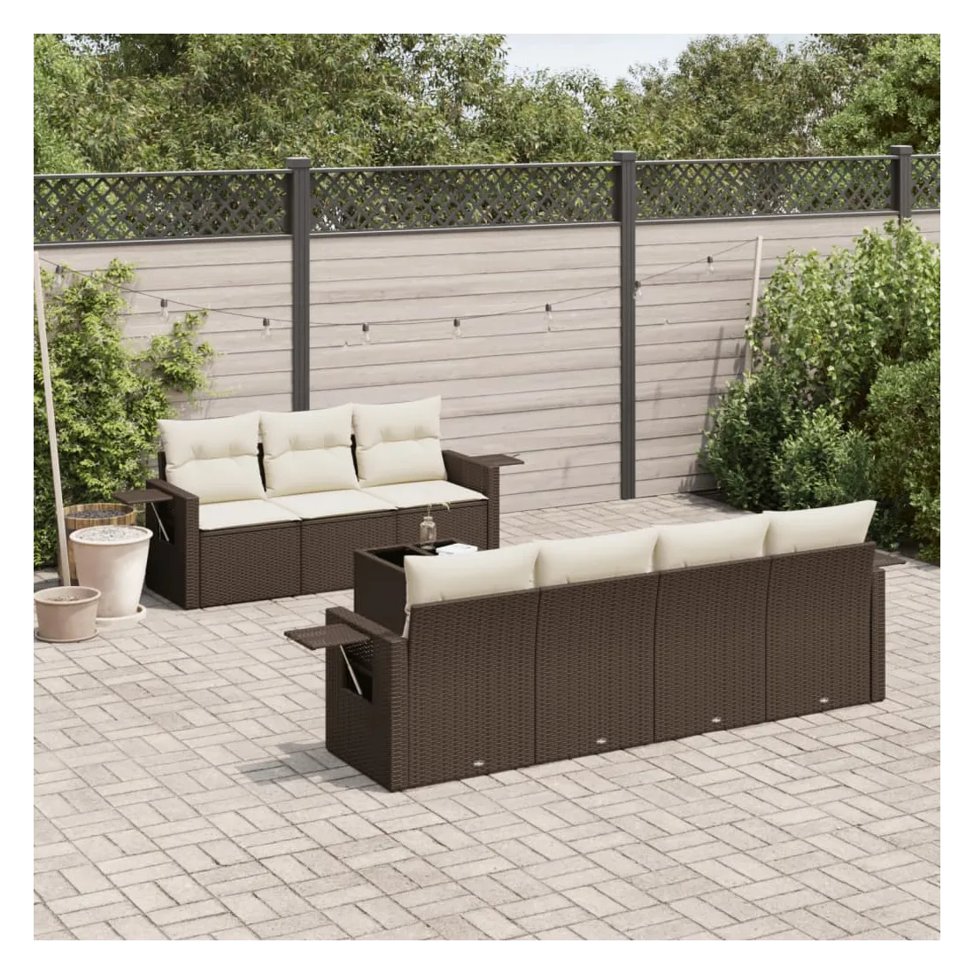 Cet ensemble de canapés de jardin est le complément parfait de votre arrière-cour, terrasse ou patio, offrant un espace confortable et accueillant pour discuter avec la famille et les amis ou simplement se détendre et profiter de l'extérieur. Matériau durable : la résine tressée, également connue sous le nom de poly rotin, est un matériau synthétique solide et nécessitant peu d'entretien qui ressemble au rotin naturel. Il est léger, facile à nettoyer et couramment utilisé pour les meubles d'extérieur en raison de sa durabilité et de ses propriétés de résistance aux intempéries.Fonction de rangement avec sac résistant à l'eau : le mobilier de jardin dispose d'un espace de rangement sous l'assise, complété par un sac résistant à l'eau pour ranger coussins, jouets et autres objets. Le sac intérieur peut être solidement fixé au mobilier d'extérieur grâce à des attaches auto-agrippantes pour plus de stabilité.Table d'appoint pratique : ce mobilier d'extérieur comprend une table d'appoint pliable avec un ressort à gaz sur les accoudoirs, offrant un endroit pratique pour garder vos essentiels à portée de main.Housse amovible et lavable : ces coussins de siège sont dotés de housses amovibles pour un lavage et un entretien faciles.Conception modulaire : cet ensemble de meubles d'extérieur a une conception modulaire, ce qui le rend complètement flexible et facile à déplacer, afin que vous puissiez créer un agencement de meubles d'extérieur personnalisé. Bon à savoir :Pour que vos meubles d'extérieur restent beaux, nous vous recommandons de les protéger avec une housse imperméable.