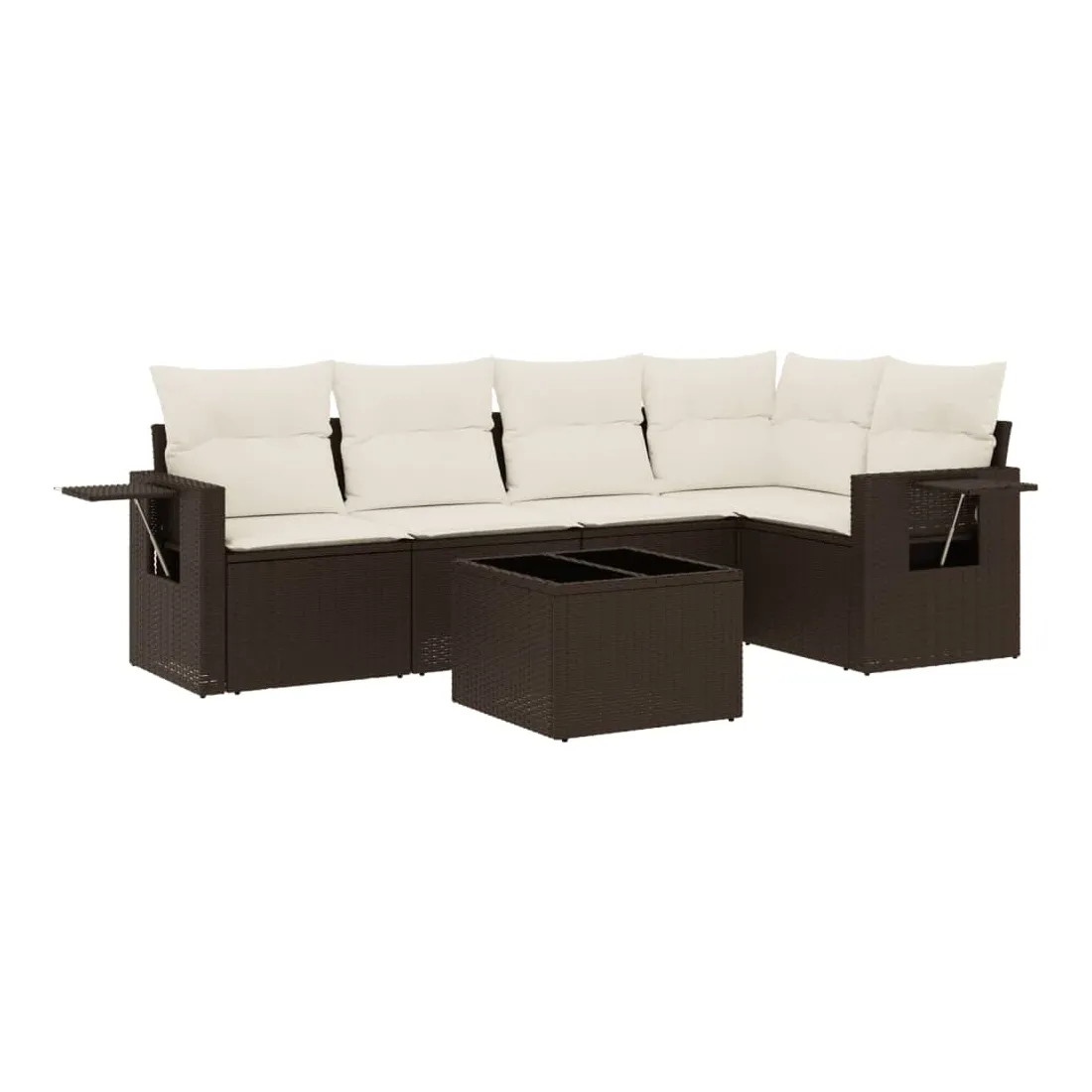 Salon de jardin avec coussins 6 pcs marron résine tressée