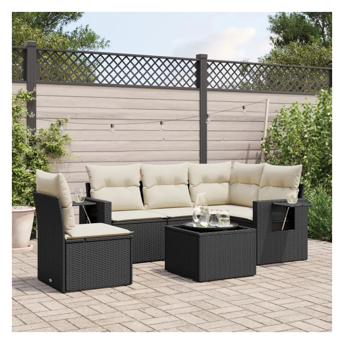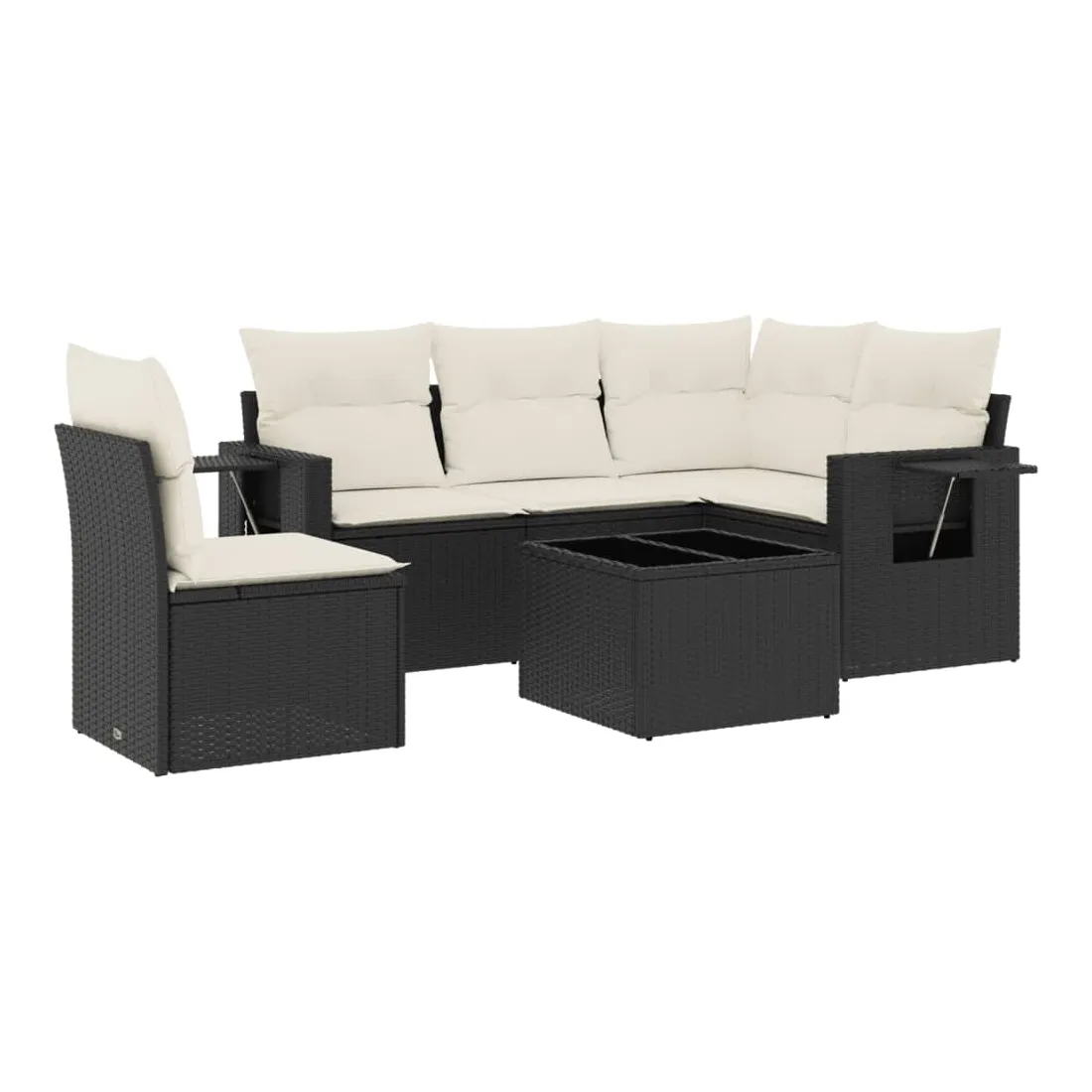 Salon de jardin 6 pcs avec coussins noir résine tressée