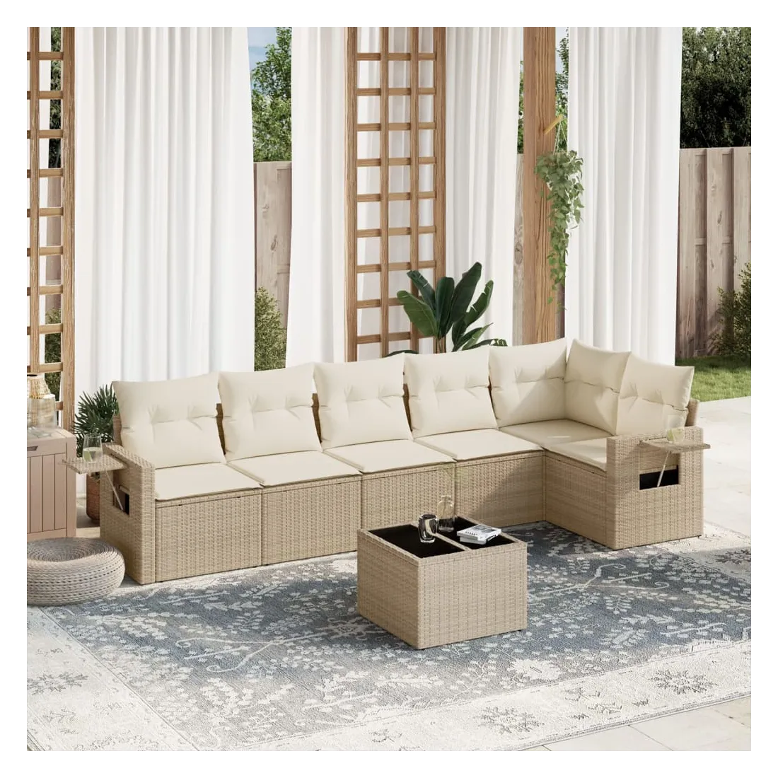 Cet ensemble de canapés de jardin est le complément parfait de votre arrière-cour, terrasse ou patio, offrant un espace confortable et accueillant pour discuter avec la famille et les amis ou simplement se détendre et profiter de l'extérieur. Matériau durable : la résine tressée, également connue sous le nom de poly rotin, est un matériau synthétique solide et nécessitant peu d'entretien qui ressemble au rotin naturel. Il est léger, facile à nettoyer et couramment utilisé pour les meubles d'extérieur en raison de sa durabilité et de ses propriétés de résistance aux intempéries.Fonction de rangement avec sac résistant à l'eau : le mobilier de jardin dispose d'un espace de rangement sous l'assise, complété par un sac résistant à l'eau pour ranger coussins, jouets et autres objets. Le sac intérieur peut être solidement fixé au mobilier d'extérieur grâce à des attaches auto-agrippantes pour plus de stabilité.Table d'appoint pratique : ce mobilier d'extérieur comprend une table d'appoint pliable avec un ressort à gaz sur les accoudoirs, offrant un endroit pratique pour garder vos essentiels à portée de main.Housse amovible et lavable : ces coussins de siège sont dotés de housses amovibles pour un lavage et un entretien faciles.Conception modulaire : cet ensemble de meubles d'extérieur a une conception modulaire, ce qui le rend complètement flexible et facile à déplacer, afin que vous puissiez créer un agencement de meubles d'extérieur personnalisé. Bon à savoir :Pour que vos meubles d'extérieur restent beaux, nous vous recommandons de les protéger avec une housse imperméable.