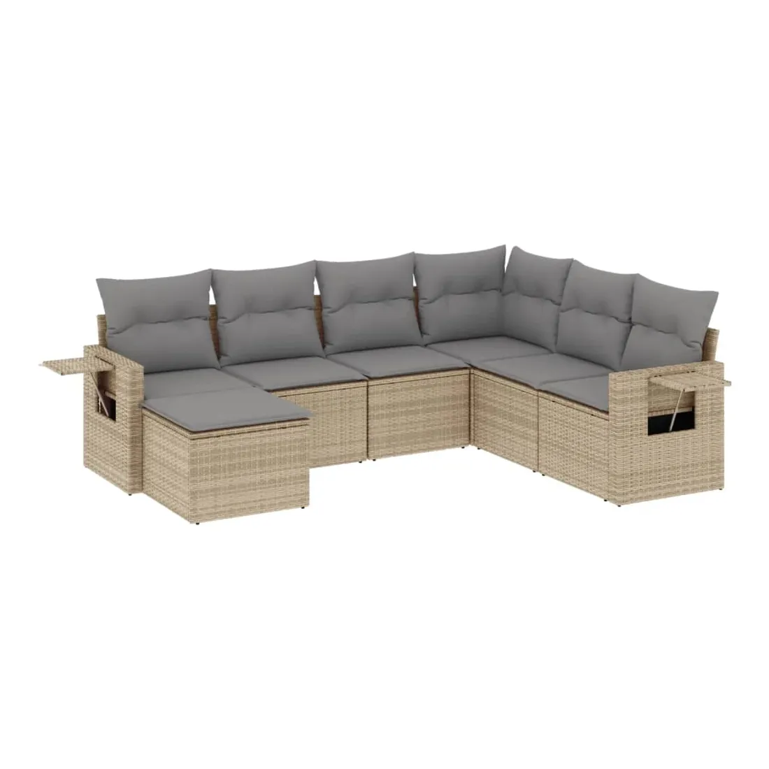 Salon de jardin avec coussins 7 pcs beige résine tressée