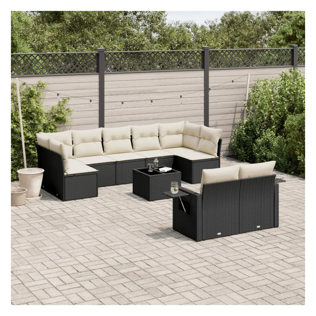 Salon de jardin 10 pcs avec coussins noir résine tressée