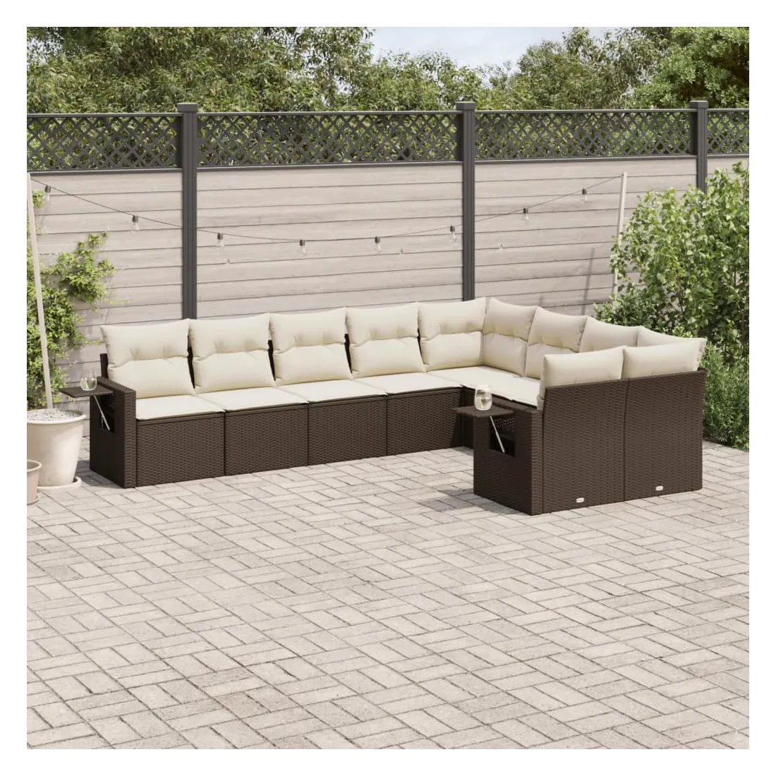 Cet ensemble de canapés de jardin est le complément parfait de votre arrière-cour, terrasse ou patio, offrant un espace confortable et accueillant pour discuter avec la famille et les amis ou simplement se détendre et profiter de l'extérieur. Matériau durable : la résine tressée, également connue sous le nom de poly rotin, est un matériau synthétique solide et nécessitant peu d'entretien qui ressemble au rotin naturel. Il est léger, facile à nettoyer et couramment utilisé pour les meubles d'extérieur en raison de sa durabilité et de ses propriétés de résistance aux intempéries.Fonction de rangement avec sac résistant à l'eau : le mobilier de jardin dispose d'un espace de rangement sous l'assise, complété par un sac résistant à l'eau pour ranger coussins, jouets et autres objets. Le sac intérieur peut être solidement fixé au mobilier d'extérieur grâce à des attaches auto-agrippantes pour plus de stabilité.Table d'appoint pratique : ce mobilier d'extérieur comprend une table d'appoint pliable avec un ressort à gaz sur les accoudoirs, offrant un endroit pratique pour garder vos essentiels à portée de main.Housse amovible et lavable : ces coussins de siège sont dotés de housses amovibles pour un lavage et un entretien faciles.Conception modulaire : cet ensemble de meubles d'extérieur a une conception modulaire, ce qui le rend complètement flexible et facile à déplacer, afin que vous puissiez créer un agencement de meubles d'extérieur personnalisé. Bon à savoir :Pour que vos meubles d'extérieur restent beaux, nous vous recommandons de les protéger avec une housse imperméable.