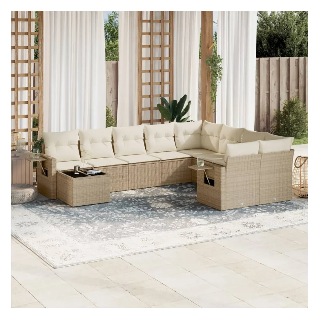 Salon de jardin avec coussins 10 pcs beige résine tressée