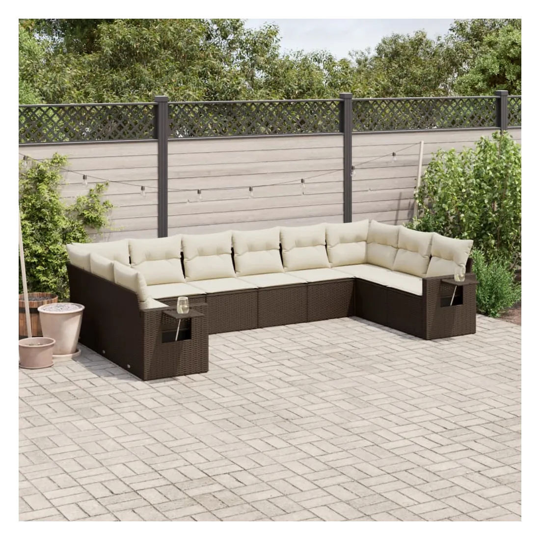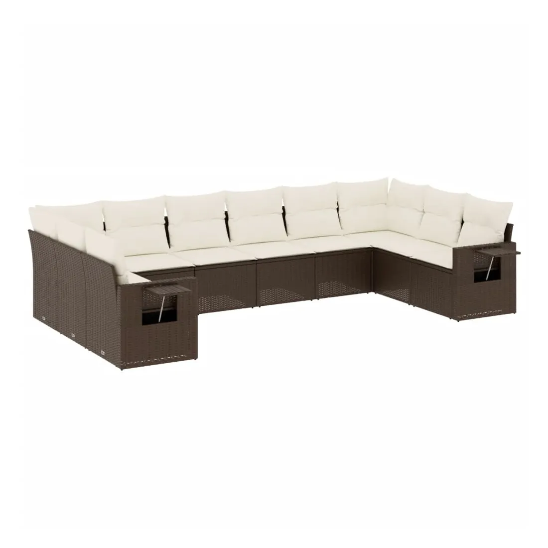 Salon de jardin 10 pcs avec coussins marron résine tressée