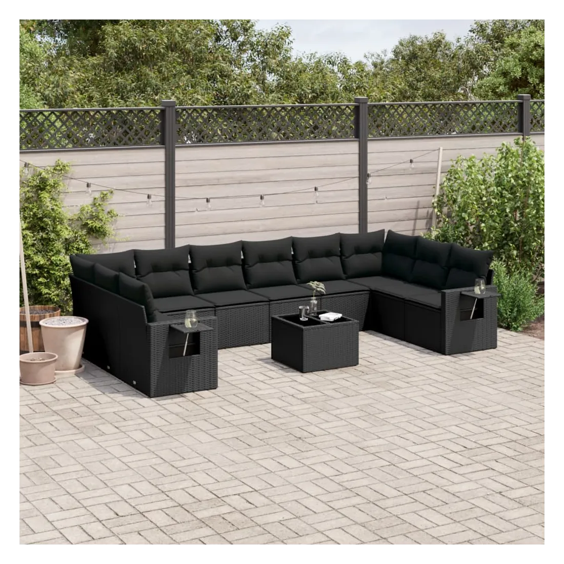 Cet ensemble de canapés de jardin est le complément parfait de votre arrière-cour, terrasse ou patio, offrant un espace confortable et accueillant pour discuter avec la famille et les amis ou simplement se détendre et profiter de l'extérieur. Matériau durable : la résine tressée, également connue sous le nom de poly rotin, est un matériau synthétique solide et nécessitant peu d'entretien qui ressemble au rotin naturel. Il est léger, facile à nettoyer et couramment utilisé pour les meubles d'extérieur en raison de sa durabilité et de ses propriétés de résistance aux intempéries.Fonction de rangement avec sac résistant à l'eau : le mobilier de jardin dispose d'un espace de rangement sous l'assise, complété par un sac résistant à l'eau pour ranger coussins, jouets et autres objets. Le sac intérieur peut être solidement fixé au mobilier d'extérieur grâce à des attaches auto-agrippantes pour plus de stabilité.Table d'appoint pratique : ce mobilier d'extérieur comprend une table d'appoint pliable avec un ressort à gaz sur les accoudoirs, offrant un endroit pratique pour garder vos essentiels à portée de main.Housse amovible et lavable : ces coussins de siège sont dotés de housses amovibles pour un lavage et un entretien faciles.Conception modulaire : cet ensemble de meubles d'extérieur a une conception modulaire, ce qui le rend complètement flexible et facile à déplacer, afin que vous puissiez créer un agencement de meubles d'extérieur personnalisé. Bon à savoir :Pour que vos meubles d'extérieur restent beaux, nous vous recommandons de les protéger avec une housse imperméable.
