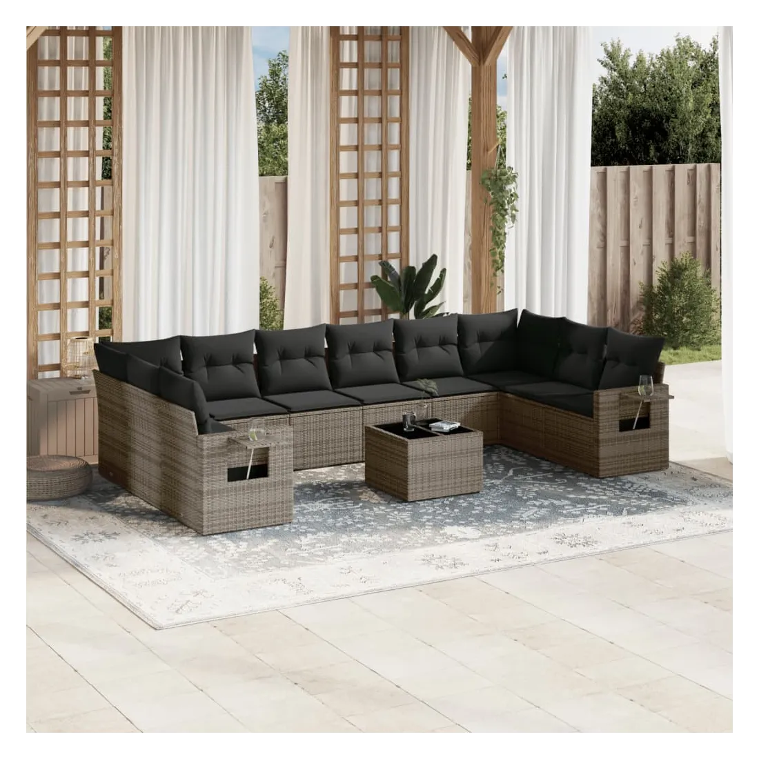 Salon de jardin 11 pcs avec coussins gris résine tressée