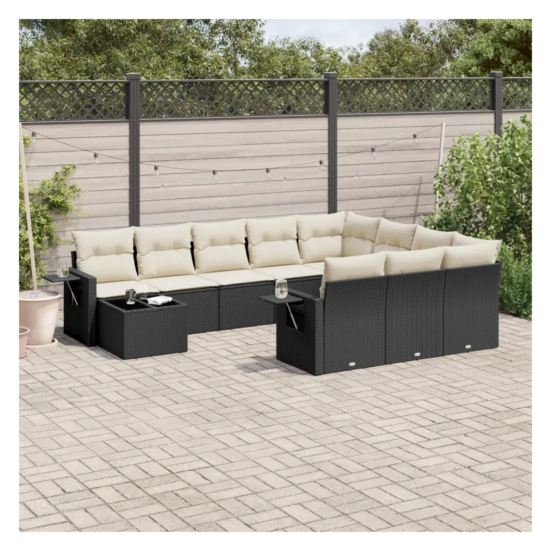 Cet ensemble de canapés de jardin est le complément parfait de votre arrière-cour, terrasse ou patio, offrant un espace confortable et accueillant pour discuter avec la famille et les amis ou simplement se détendre et profiter de l'extérieur. Matériau durable : la résine tressée, également connue sous le nom de poly rotin, est un matériau synthétique solide et nécessitant peu d'entretien qui ressemble au rotin naturel. Il est léger, facile à nettoyer et couramment utilisé pour les meubles d'extérieur en raison de sa durabilité et de ses propriétés de résistance aux intempéries.Fonction de rangement avec sac résistant à l'eau : le mobilier de jardin dispose d'un espace de rangement sous l'assise, complété par un sac résistant à l'eau pour ranger coussins, jouets et autres objets. Le sac intérieur peut être solidement fixé au mobilier d'extérieur grâce à des attaches auto-agrippantes pour plus de stabilité.Table d'appoint pratique : ce mobilier d'extérieur comprend une table d'appoint pliable avec un ressort à gaz sur les accoudoirs, offrant un endroit pratique pour garder vos essentiels à portée de main.Housse amovible et lavable : ces coussins de siège sont dotés de housses amovibles pour un lavage et un entretien faciles.Conception modulaire : cet ensemble de meubles d'extérieur a une conception modulaire, ce qui le rend complètement flexible et facile à déplacer, afin que vous puissiez créer un agencement de meubles d'extérieur personnalisé. Bon à savoir :Pour que vos meubles d'extérieur restent beaux, nous vous recommandons de les protéger avec une housse imperméable.