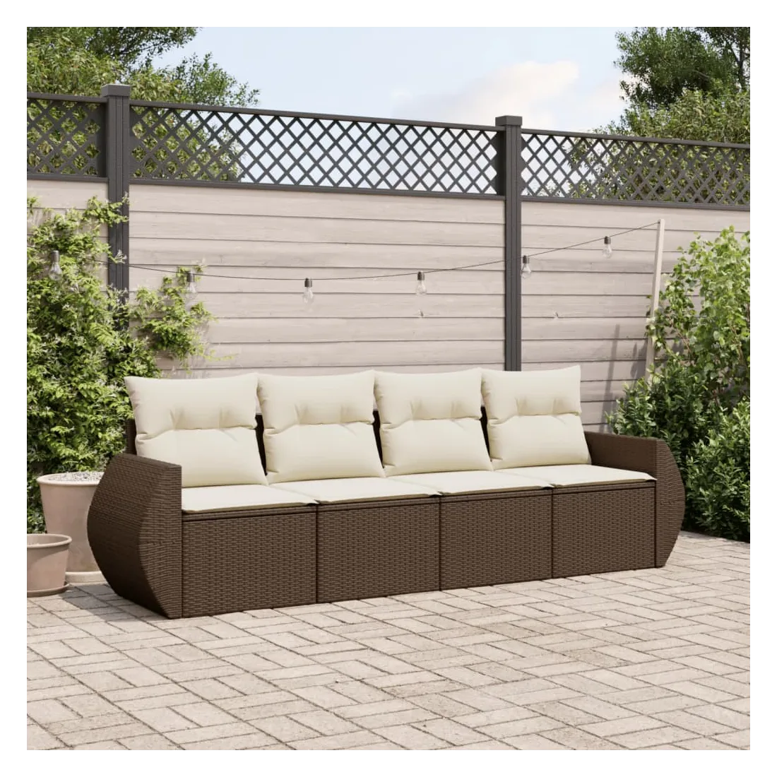 Cet ensemble de canapés de jardin est le complément parfait de votre arrière-cour, terrasse ou patio, offrant un espace confortable et accueillant pour discuter avec la famille et les amis ou simplement se détendre et profiter de l'extérieur. Matériau durable : la résine tressée, également connue sous le nom de poly rotin, est un matériau synthétique solide et nécessitant peu d'entretien qui ressemble au rotin naturel. Il est léger, facile à nettoyer et couramment utilisé pour les meubles d'extérieur en raison de sa durabilité et de ses propriétés de résistance aux intempéries.Fonction de rangement avec sac résistant à l'eau : chaque siège de jardin dispose d'un espace de rangement sous l'assise, complété par un sac résistant à l'eau pour ranger les coussins, les jouets et d'autres objets. Les sacs intérieurs sont dotés d'un couvercle et peuvent être solidement fixés aux sièges à l'aide de bandes auto-agrippantes pour plus de stabilité.Expérience d'assise confortable : ce mobilier d'extérieur, doté de coussins épais, offre une expérience d'assise confortable.Housse amovible et lavable : ces coussins de siège sont dotés de housses amovibles pour un lavage et un entretien faciles.Conception modulaire : cet ensemble de meubles d'extérieur a une conception modulaire, ce qui le rend complètement flexible et facile à déplacer, afin que vous puissiez créer un agencement de meubles d'extérieur personnalisé. Bon à savoir :Pour que vos meubles d'extérieur restent beaux, nous vous recommandons de les protéger avec une housse imperméable.