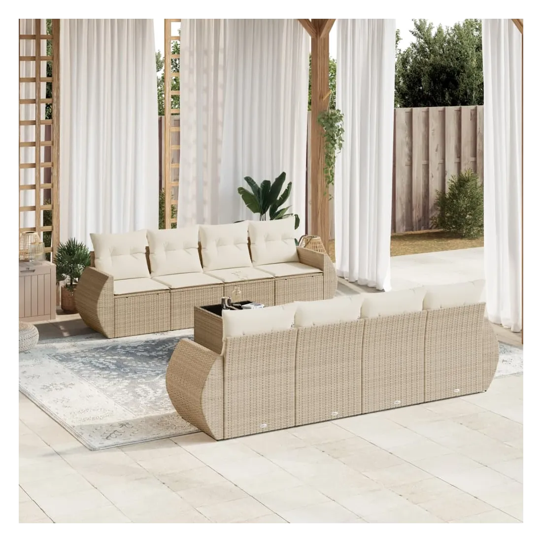 Cet ensemble de canapés de jardin est le complément parfait de votre arrière-cour, terrasse ou patio, offrant un espace confortable et accueillant pour discuter avec la famille et les amis ou simplement se détendre et profiter de l'extérieur. Matériau durable : la résine tressée, également connue sous le nom de poly rotin, est un matériau synthétique solide et nécessitant peu d'entretien qui ressemble au rotin naturel. Il est léger, facile à nettoyer et couramment utilisé pour les meubles d'extérieur en raison de sa durabilité et de ses propriétés de résistance aux intempéries.Fonction de rangement avec sac résistant à l'eau : chaque siège de jardin dispose d'un espace de rangement sous l'assise, complété par un sac résistant à l'eau pour ranger les coussins, les jouets et d'autres objets. Les sacs intérieurs sont dotés d'un couvercle et peuvent être solidement fixés aux sièges à l'aide de bandes auto-agrippantes pour plus de stabilité.Dessus en verre : le dessus de la table d'extérieur est fabriqué en verre trempé solide et durable, ce qui le rend facile à nettoyer avec un chiffon humide et ajoute une touche d'élégance à votre espace extérieur.Housse amovible et lavable : ces coussins de siège sont dotés de housses amovibles pour un lavage et un entretien faciles.Conception modulaire : cet ensemble de meubles d'extérieur a une conception modulaire, ce qui le rend complètement flexible et facile à déplacer, afin que vous puissiez créer un agencement de meubles d'extérieur personnalisé. Bon à savoir :Pour que vos meubles d'extérieur restent beaux, nous vous recommandons de les protéger avec une housse imperméable.