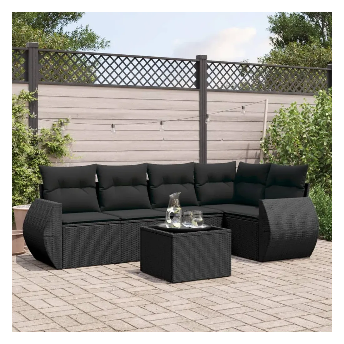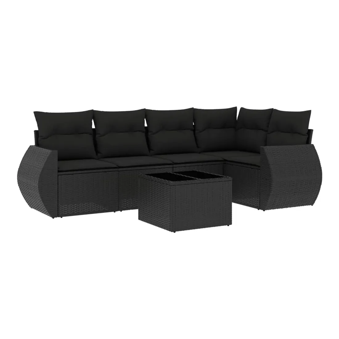 Salon de jardin 6 pcs avec coussins noir résine tressée