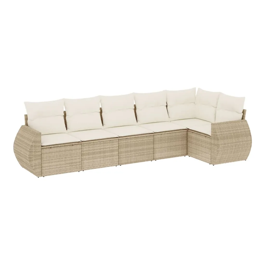 Salon de jardin avec coussins 6 pcs beige résine tressée