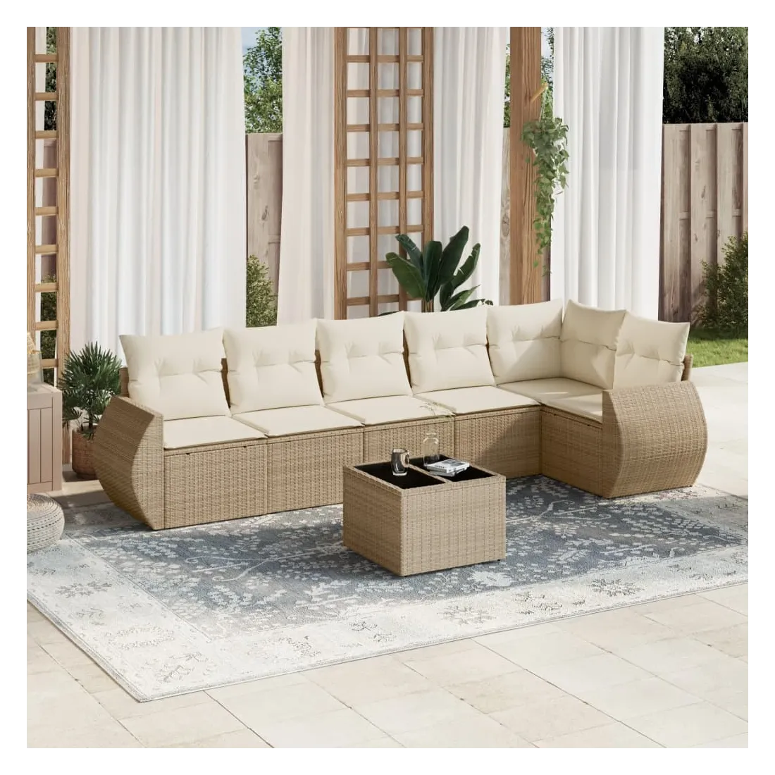 Salon de jardin avec coussins 7 pcs beige résine tressée