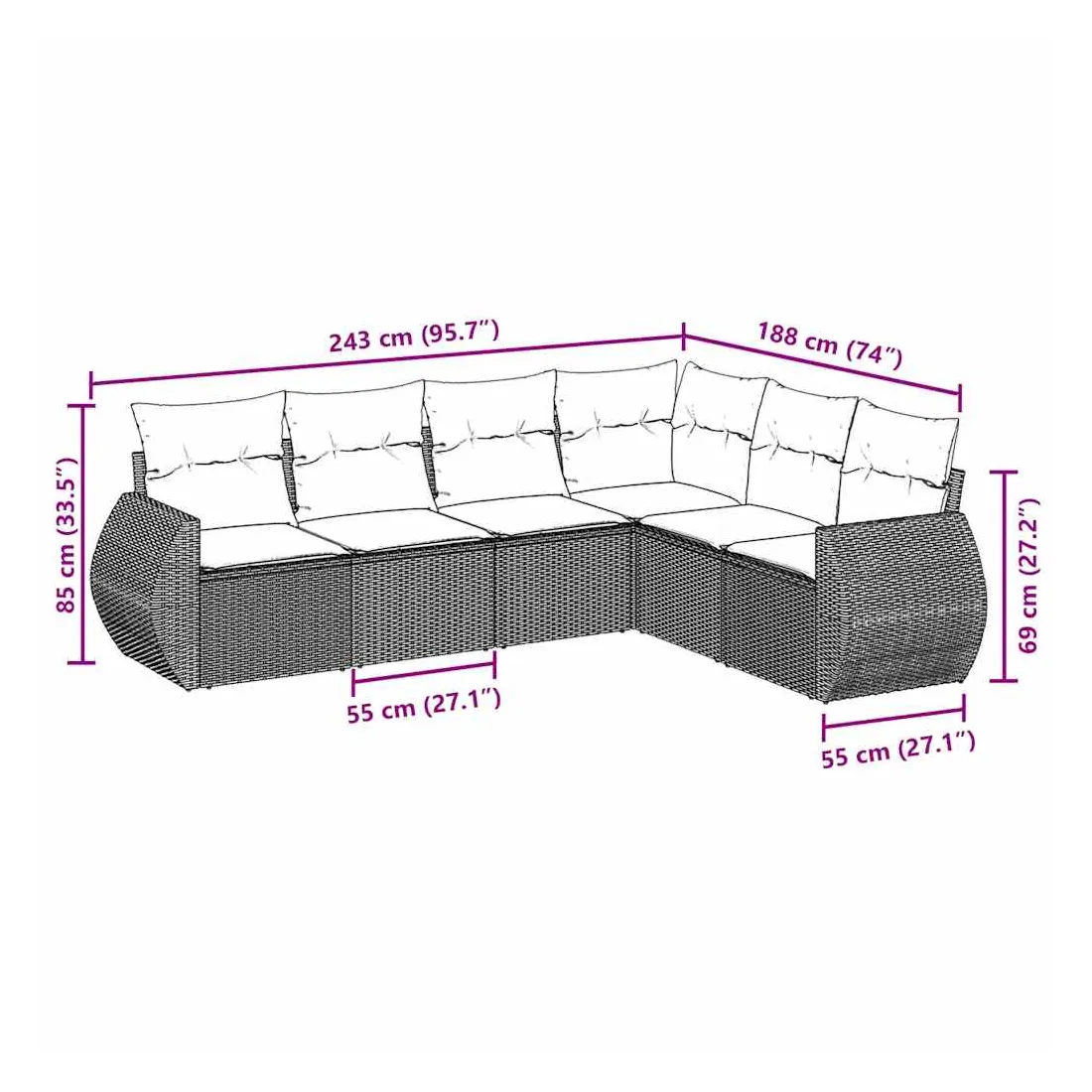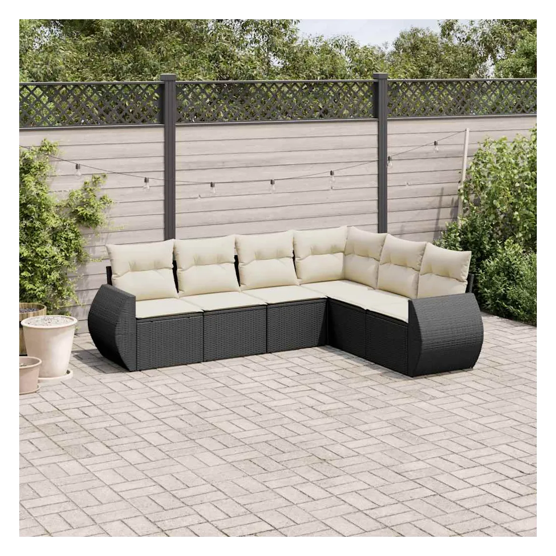 Cet ensemble de canapés de jardin est le complément parfait de votre arrière-cour, terrasse ou patio, offrant un espace confortable et accueillant pour discuter avec la famille et les amis ou simplement se détendre et profiter de l'extérieur. Matériau durable : la résine tressée, également connue sous le nom de poly rotin, est un matériau synthétique solide et nécessitant peu d'entretien qui ressemble au rotin naturel. Il est léger, facile à nettoyer et couramment utilisé pour les meubles d'extérieur en raison de sa durabilité et de ses propriétés de résistance aux intempéries.Fonction de rangement avec sac résistant à l'eau : chaque siège de jardin dispose d'un espace de rangement sous l'assise, complété par un sac résistant à l'eau pour ranger les coussins, les jouets et d'autres objets. Les sacs intérieurs sont dotés d'un couvercle et peuvent être solidement fixés aux sièges à l'aide de bandes auto-agrippantes pour plus de stabilité.Housse amovible et lavable : ces coussins de siège sont dotés de housses amovibles pour un lavage et un entretien faciles.Conception modulaire : cet ensemble de meubles d'extérieur a une conception modulaire, ce qui le rend complètement flexible et facile à déplacer, afin que vous puissiez créer un agencement de meubles d'extérieur personnalisé. Bon à savoir :Pour que vos meubles d'extérieur restent beaux, nous vous recommandons de les protéger avec une housse imperméable.