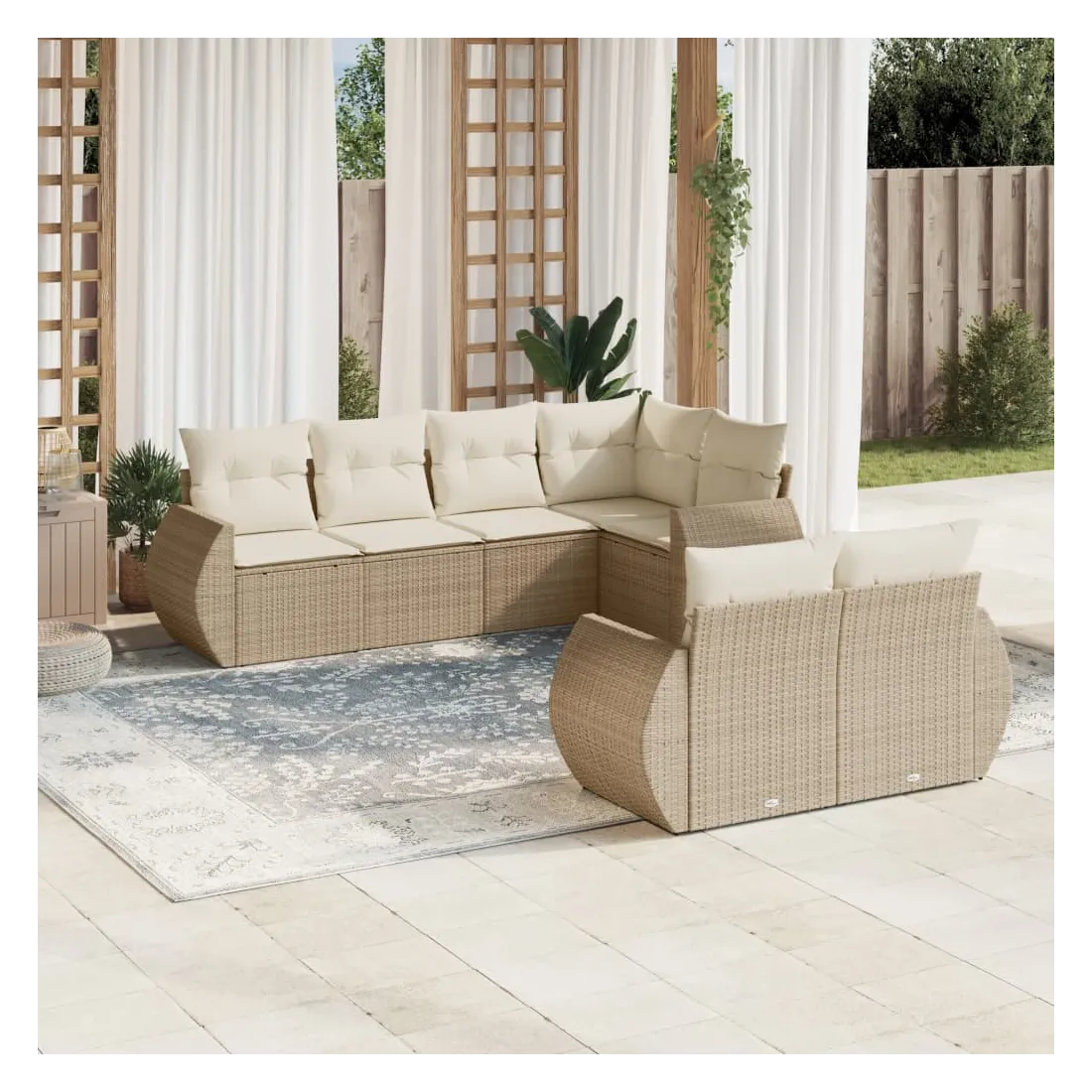 Cet ensemble de canapés de jardin est le complément parfait de votre arrière-cour, terrasse ou patio, offrant un espace confortable et accueillant pour discuter avec la famille et les amis ou simplement se détendre et profiter de l'extérieur. Matériau durable : la résine tressée, également connue sous le nom de poly rotin, est un matériau synthétique solide et nécessitant peu d'entretien qui ressemble au rotin naturel. Il est léger, facile à nettoyer et couramment utilisé pour les meubles d'extérieur en raison de sa durabilité et de ses propriétés de résistance aux intempéries.Fonction de rangement avec sac résistant à l'eau : chaque siège de jardin dispose d'un espace de rangement sous l'assise, complété par un sac résistant à l'eau pour ranger les coussins, les jouets et d'autres objets. Les sacs intérieurs sont dotés d'un couvercle et peuvent être solidement fixés aux sièges à l'aide de bandes auto-agrippantes pour plus de stabilité.Housse amovible et lavable : ces coussins de siège sont dotés de housses amovibles pour un lavage et un entretien faciles.Conception modulaire : cet ensemble de meubles d'extérieur a une conception modulaire, ce qui le rend complètement flexible et facile à déplacer, afin que vous puissiez créer un agencement de meubles d'extérieur personnalisé. Bon à savoir :Pour que vos meubles d'extérieur restent beaux, nous vous recommandons de les protéger avec une housse imperméable.