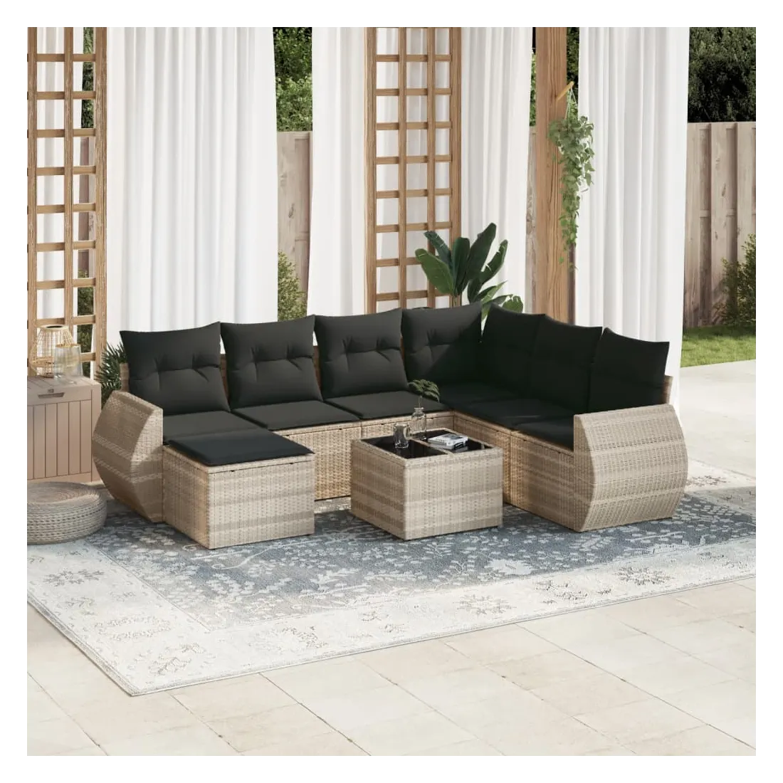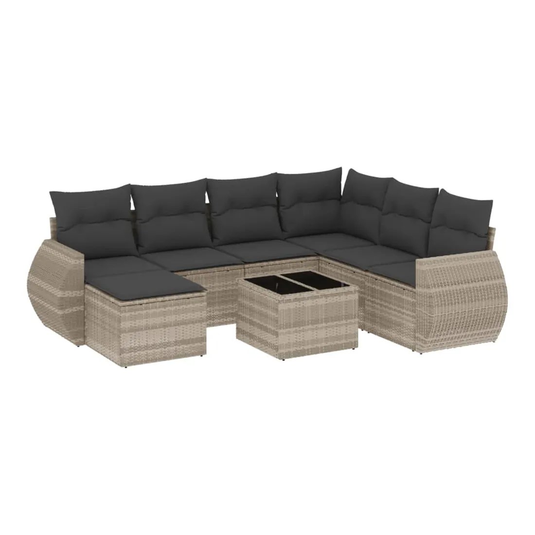 Salon de jardin 8 pcs avec coussins gris clair résine tressée