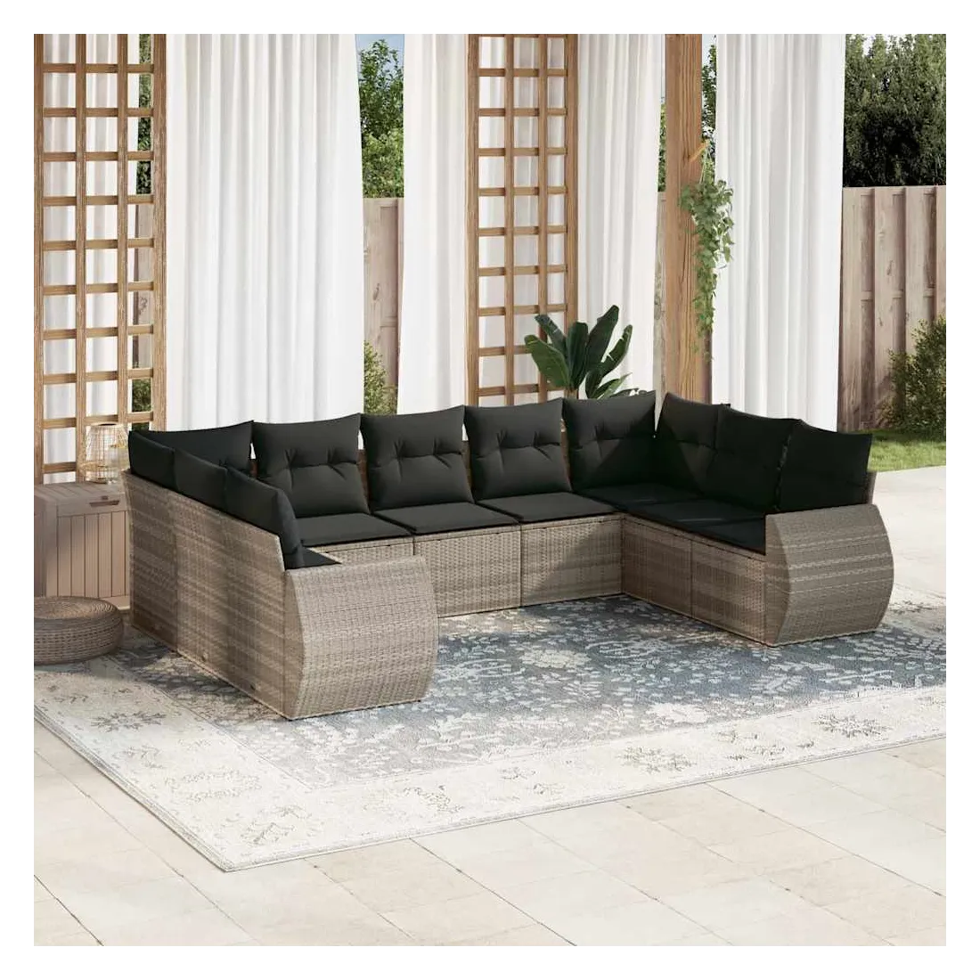 Cet ensemble de canapés de jardin est le complément parfait de votre arrière-cour, terrasse ou patio, offrant un espace confortable et accueillant pour discuter avec la famille et les amis ou simplement se détendre et profiter de l'extérieur. Matériau durable : la résine tressée, également connue sous le nom de poly rotin, est un matériau synthétique solide et nécessitant peu d'entretien qui ressemble au rotin naturel. Il est léger, facile à nettoyer et couramment utilisé pour les meubles d'extérieur en raison de sa durabilité et de ses propriétés de résistance aux intempéries.Fonction de rangement avec sac résistant à l'eau : chaque siège de jardin dispose d'un espace de rangement sous l'assise, complété par un sac résistant à l'eau pour ranger les coussins, les jouets et d'autres objets. Les sacs intérieurs sont dotés d'un couvercle et peuvent être solidement fixés aux sièges à l'aide de bandes auto-agrippantes pour plus de stabilité.Housse amovible et lavable : ces coussins de siège sont dotés de housses amovibles pour un lavage et un entretien faciles.Conception modulaire : cet ensemble de meubles d'extérieur a une conception modulaire, ce qui le rend complètement flexible et facile à déplacer, afin que vous puissiez créer un agencement de meubles d'extérieur personnalisé. Bon à savoir :Pour que vos meubles d'extérieur restent beaux, nous vous recommandons de les protéger avec une housse imperméable.