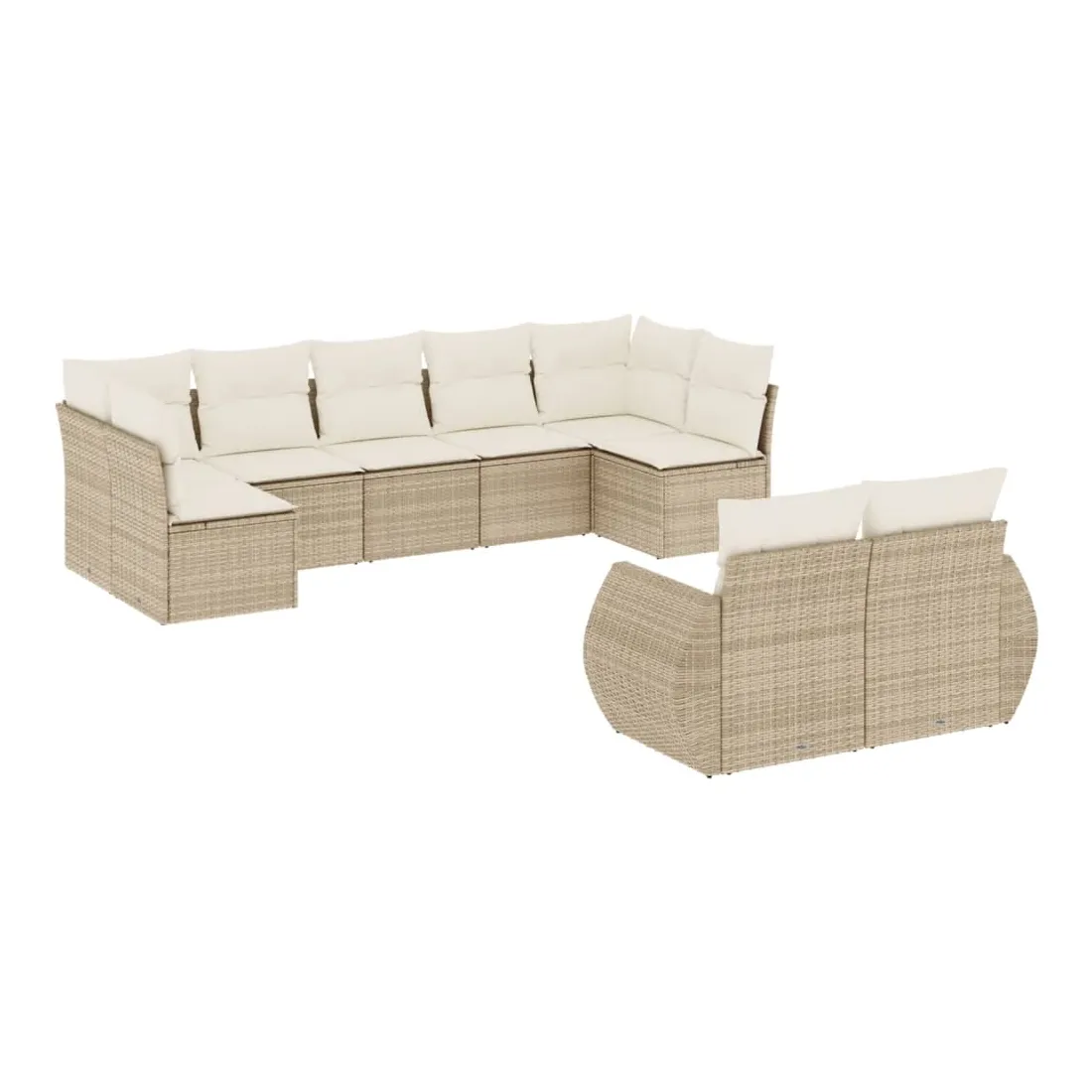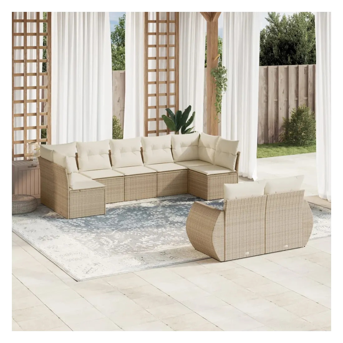 Salon de jardin avec coussins 9 pcs beige résine tressée
