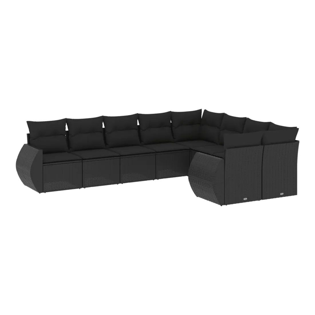 Salon de jardin 9 pcs avec coussins noir résine tressée