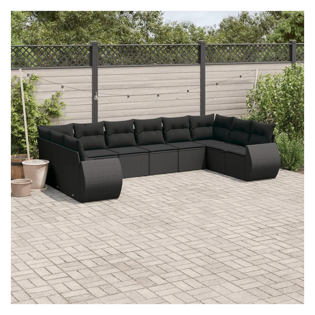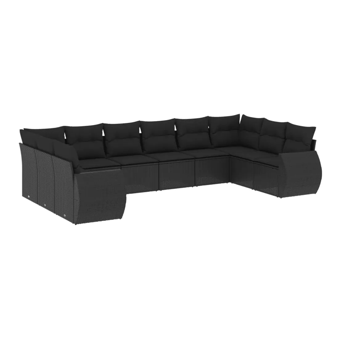 Salon de jardin 10 pcs avec coussins noir résine tressée