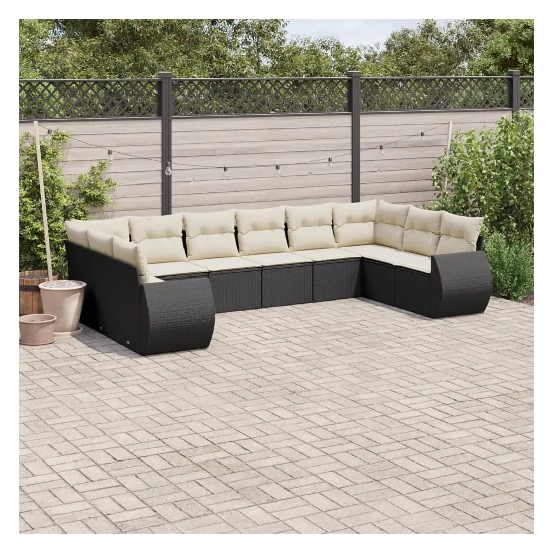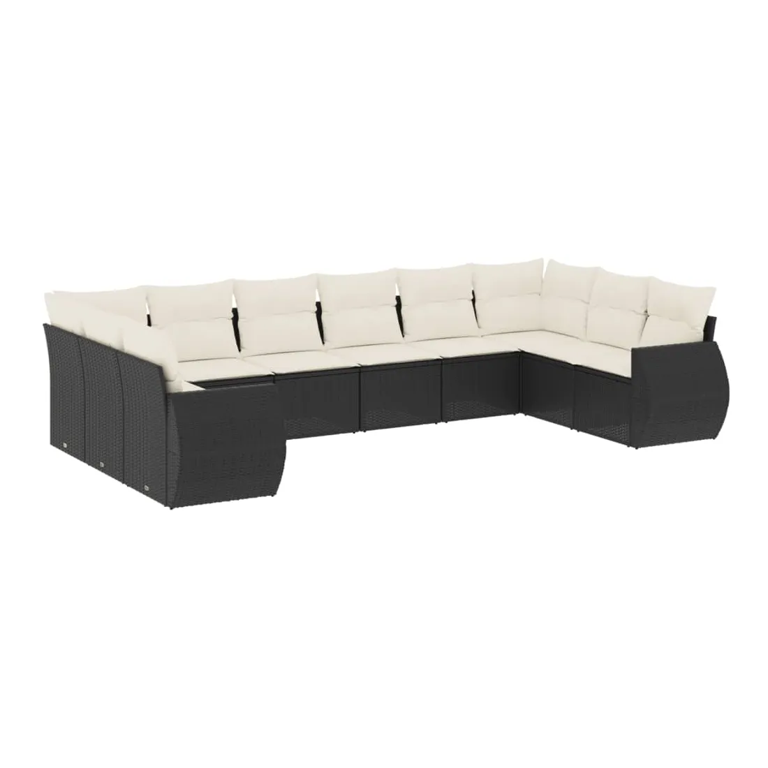 Salon de jardin 10 pcs avec coussins noir résine tressée