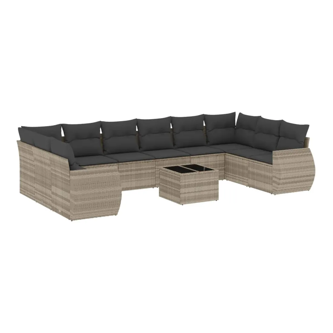 Salon de jardin 11 pcs avec coussins gris clair résine tressée