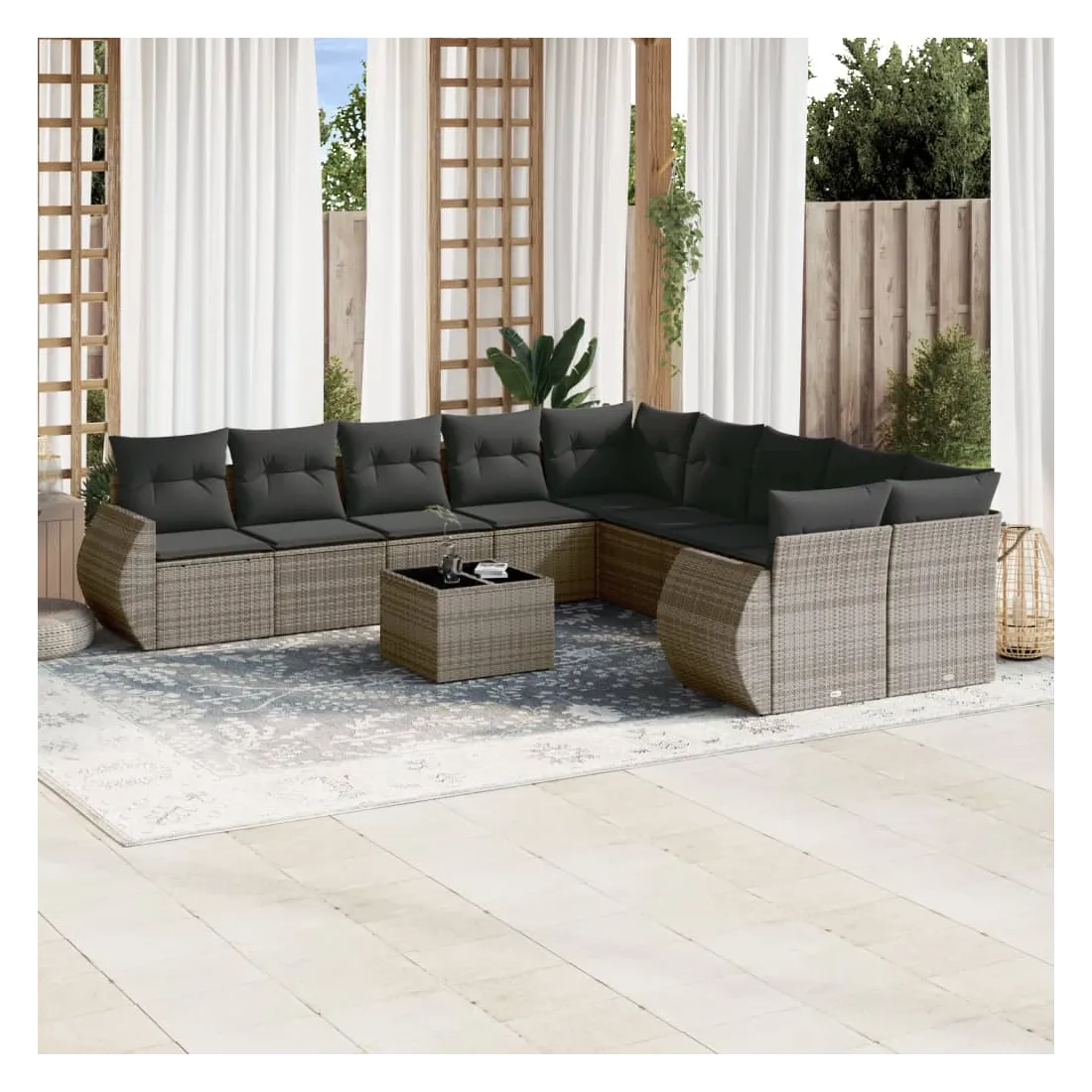 Salon de jardin avec coussins 10 pcs gris résine tressée
