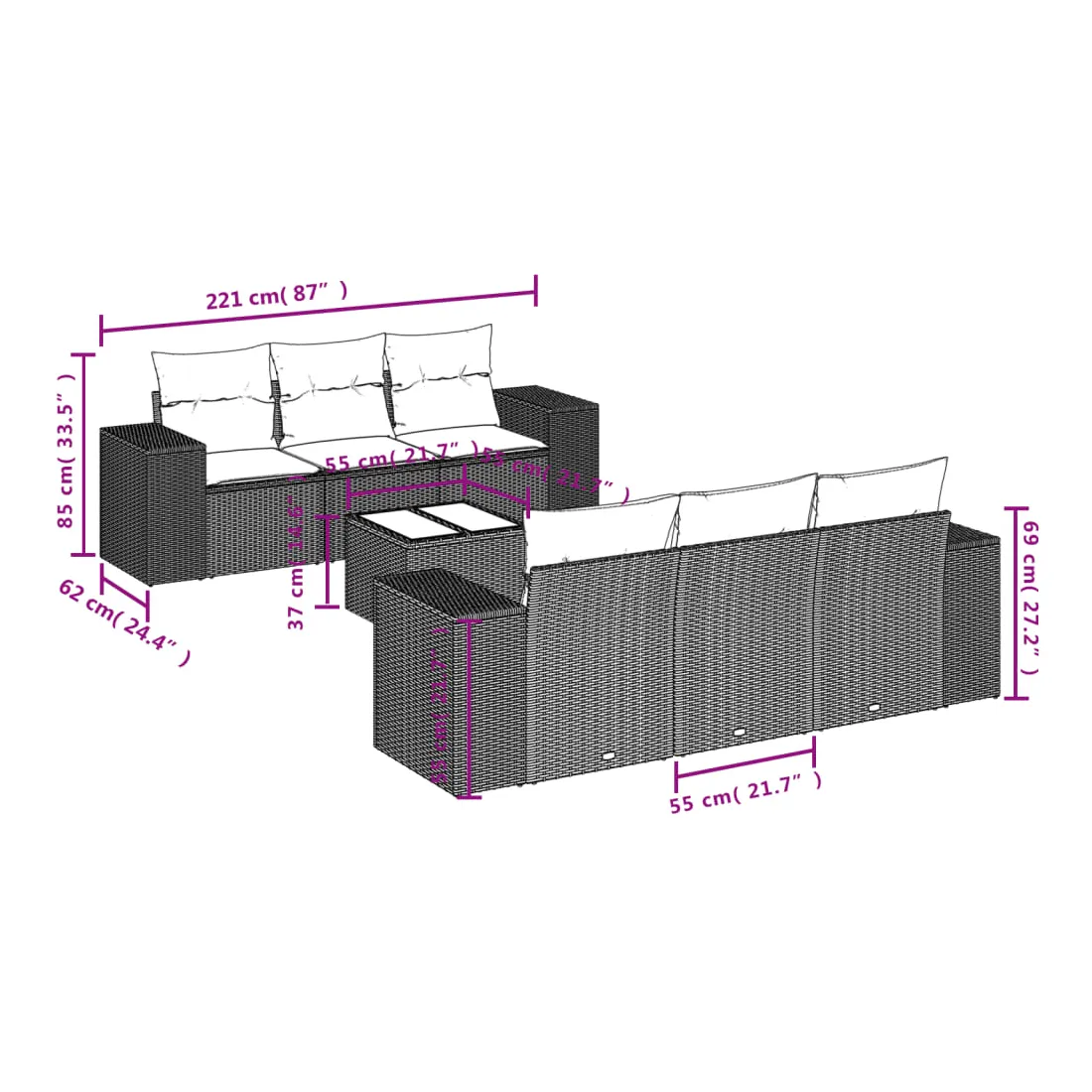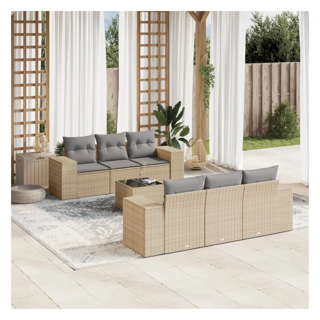 Cet ensemble de canapés de jardin est le complément parfait de votre arrière-cour, terrasse ou patio, offrant un espace confortable et accueillant pour discuter avec la famille et les amis ou simplement se détendre et profiter de l'extérieur. Matériau durable : la résine tressée, également connue sous le nom de poly rotin, est un matériau synthétique solide et nécessitant peu d'entretien qui ressemble au rotin naturel. Il est léger, facile à nettoyer et couramment utilisé pour les meubles d'extérieur en raison de sa durabilité et de ses propriétés de résistance aux intempéries.Fonction de rangement avec sac résistant à l'eau : le mobilier de jardin dispose d'un espace de rangement sous l'assise, complété par un sac résistant à l'eau pour ranger coussins, jouets et autres objets. Le sac intérieur peut être solidement fixé au mobilier d'extérieur grâce à des attaches auto-agrippantes pour plus de stabilité.Dessus en verre : le dessus de la table d'extérieur est fabriqué en verre trempé solide et durable, ce qui le rend facile à nettoyer avec un chiffon humide et ajoute une touche d'élégance à votre espace extérieur.Housse amovible et lavable : ces coussins de siège sont dotés de housses amovibles pour un lavage et un entretien faciles.Conception modulaire : cet ensemble de meubles d'extérieur a une conception modulaire, ce qui le rend complètement flexible et facile à déplacer, afin que vous puissiez créer un agencement de meubles d'extérieur personnalisé. Bon à savoir :Pour que vos meubles d'extérieur restent beaux, nous vous recommandons de les protéger avec une housse imperméable.