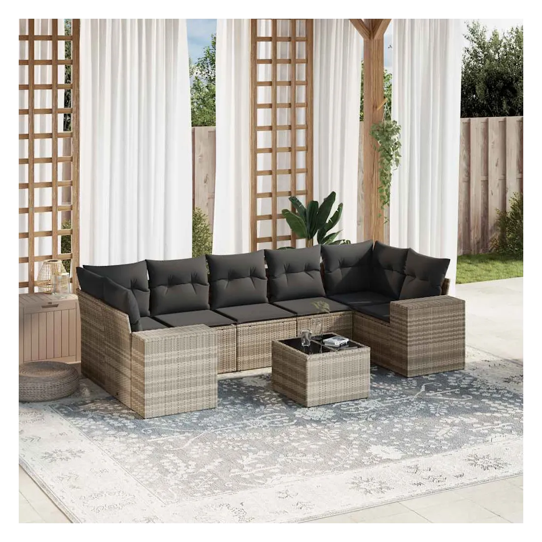 Cet ensemble de canapés de jardin est le complément parfait de votre arrière-cour, terrasse ou patio, offrant un espace confortable et accueillant pour discuter avec la famille et les amis ou simplement se détendre et profiter de l'extérieur. Matériau durable : la résine tressée, également connue sous le nom de poly rotin, est un matériau synthétique solide et nécessitant peu d'entretien qui ressemble au rotin naturel. Il est léger, facile à nettoyer et couramment utilisé pour les meubles d'extérieur en raison de sa durabilité et de ses propriétés de résistance aux intempéries.Fonction de rangement avec sac résistant à l'eau : le mobilier de jardin dispose d'un espace de rangement sous l'assise, complété par un sac résistant à l'eau pour ranger coussins, jouets et autres objets. Le sac intérieur peut être solidement fixé au mobilier d'extérieur grâce à des attaches auto-agrippantes pour plus de stabilité.Dessus en verre : le dessus de la table d'extérieur est fabriqué en verre trempé solide et durable, ce qui le rend facile à nettoyer avec un chiffon humide et ajoute une touche d'élégance à votre espace extérieur.Housse amovible et lavable : ces coussins de siège sont dotés de housses amovibles pour un lavage et un entretien faciles.Conception modulaire : cet ensemble de meubles d'extérieur a une conception modulaire, ce qui le rend complètement flexible et facile à déplacer, afin que vous puissiez créer un agencement de meubles d'extérieur personnalisé. Bon à savoir :Pour que vos meubles d'extérieur restent beaux, nous vous recommandons de les protéger avec une housse imperméable.
