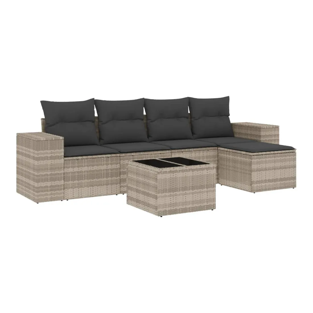 Cet ensemble de canapés de jardin est le complément parfait de votre arrière-cour, terrasse ou patio, offrant un espace confortable et accueillant pour discuter avec la famille et les amis ou simplement se détendre et profiter de l'extérieur. Matériau durable : la résine tressée, également connue sous le nom de poly rotin, est un matériau synthétique solide et nécessitant peu d'entretien qui ressemble au rotin naturel. Il est léger, facile à nettoyer et couramment utilisé pour les meubles d'extérieur en raison de sa durabilité et de ses propriétés de résistance aux intempéries.Fonction de rangement avec sac résistant à l'eau : le mobilier de jardin dispose d'un espace de rangement sous l'assise, complété par un sac résistant à l'eau pour ranger coussins, jouets et autres objets. Le sac intérieur peut être solidement fixé au mobilier d'extérieur grâce à des attaches auto-agrippantes pour plus de stabilité.Dessus en verre : le dessus de la table d'extérieur est fabriqué en verre trempé solide et durable, ce qui le rend facile à nettoyer avec un chiffon humide et ajoute une touche d'élégance à votre espace extérieur.Housse amovible et lavable : ces coussins de siège sont dotés de housses amovibles pour un lavage et un entretien faciles.Conception modulaire : cet ensemble de meubles d'extérieur a une conception modulaire, ce qui le rend complètement flexible et facile à déplacer, afin que vous puissiez créer un agencement de meubles d'extérieur personnalisé. Bon à savoir :Pour que vos meubles d'extérieur restent beaux, nous vous recommandons de les protéger avec une housse imperméable.