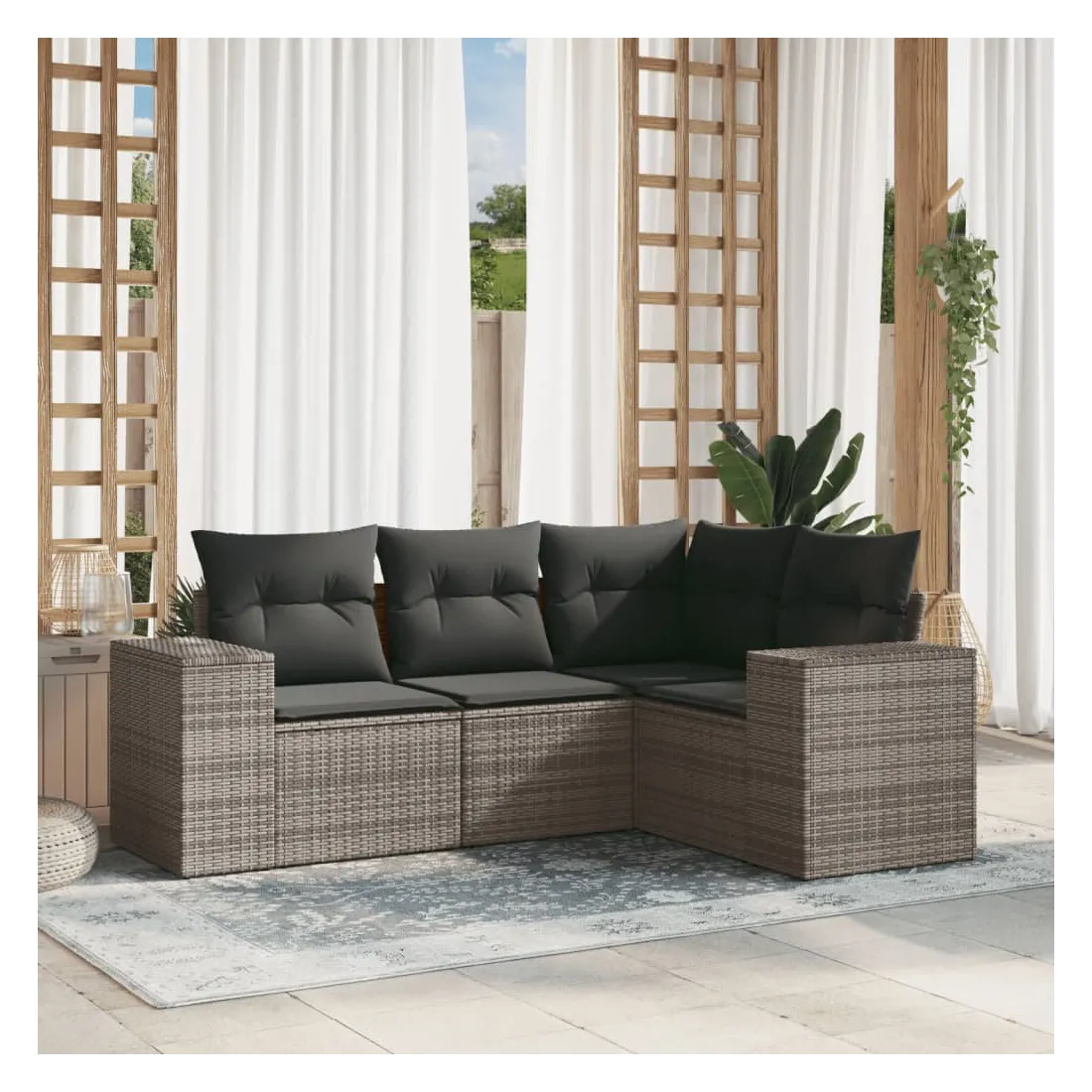 Cet ensemble de canapés de jardin est le complément parfait de votre arrière-cour, terrasse ou patio, offrant un espace confortable et accueillant pour discuter avec la famille et les amis ou simplement se détendre et profiter de l'extérieur. Matériau durable : la résine tressée, également connue sous le nom de poly rotin, est un matériau synthétique solide et nécessitant peu d'entretien qui ressemble au rotin naturel. Il est léger, facile à nettoyer et couramment utilisé pour les meubles d'extérieur en raison de sa durabilité et de ses propriétés de résistance aux intempéries.Fonction de rangement avec sac résistant à l'eau : le mobilier de jardin dispose d'un espace de rangement sous l'assise, complété par un sac résistant à l'eau pour ranger coussins, jouets et autres objets. Le sac intérieur peut être solidement fixé au mobilier d'extérieur grâce à des attaches auto-agrippantes pour plus de stabilité.Housse amovible et lavable : ces coussins de siège sont dotés de housses amovibles pour un lavage et un entretien faciles.Conception modulaire : cet ensemble de meubles d'extérieur a une conception modulaire, ce qui le rend complètement flexible et facile à déplacer, afin que vous puissiez créer un agencement de meubles d'extérieur personnalisé. Bon à savoir :Pour que vos meubles d'extérieur restent beaux, nous vous recommandons de les protéger avec une housse imperméable.
