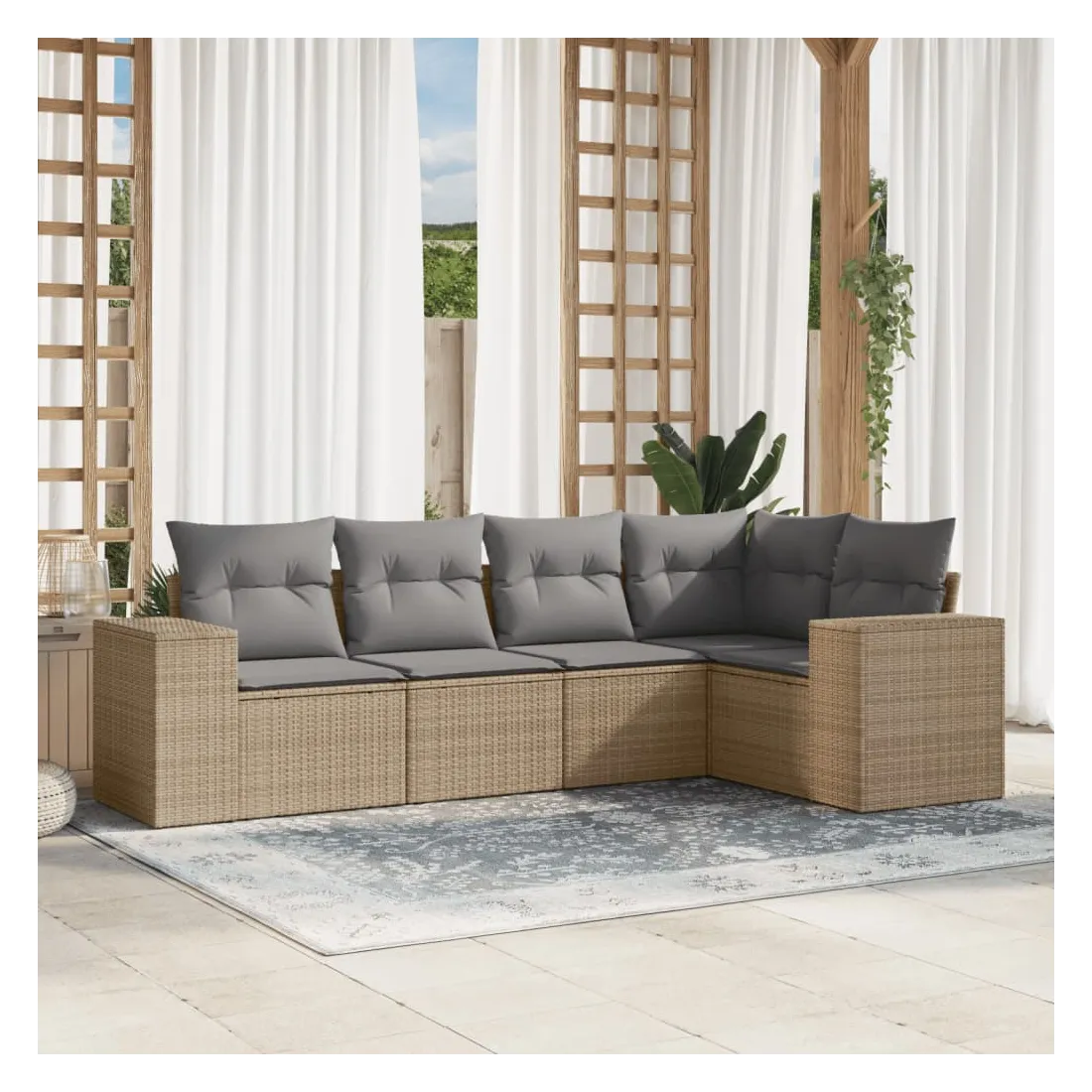 Salon de jardin avec coussins 5 pcs beige résine tressée