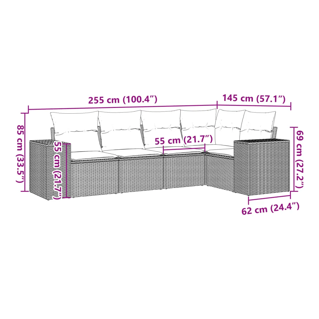 • Dimensions du coussin de dossier : 55 x 45 x 13 cm (L x l x é)