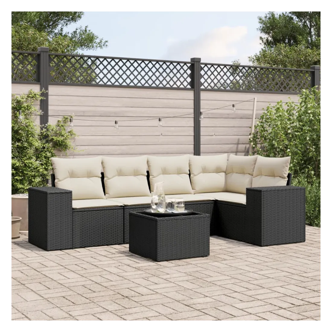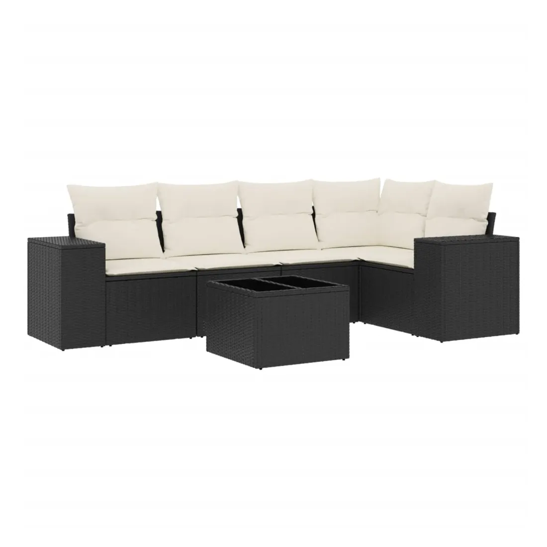 Salon de jardin 6 pcs avec coussins noir résine tressée