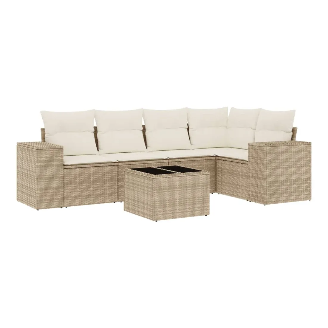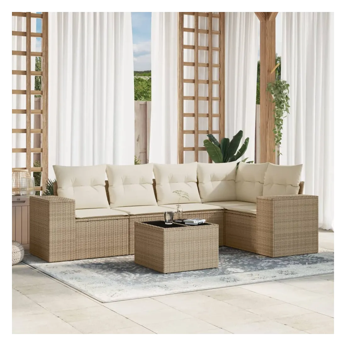 Salon de jardin avec coussins 6 pcs beige résine tressée