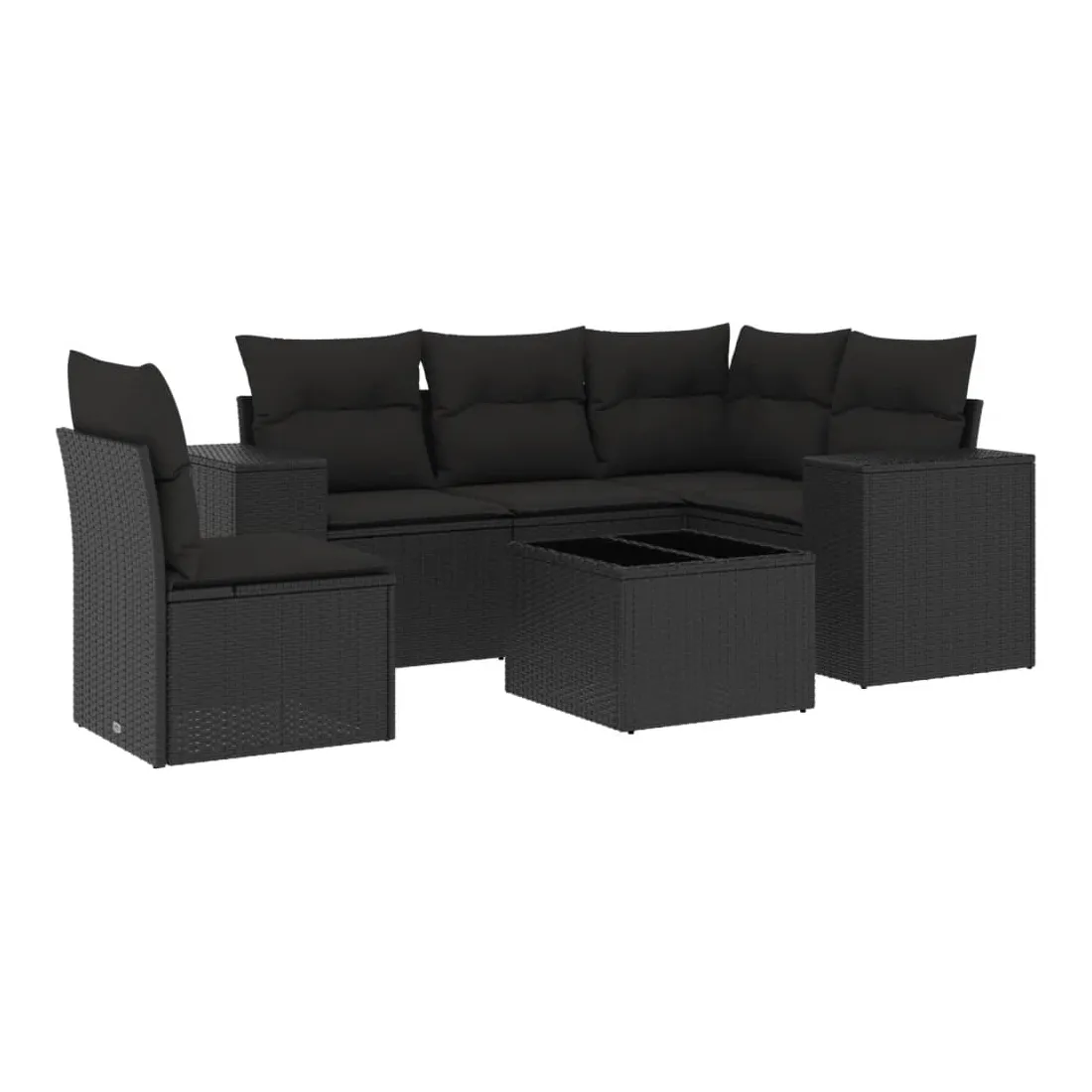 Salon de jardin 6 pcs avec coussins noir résine tressée