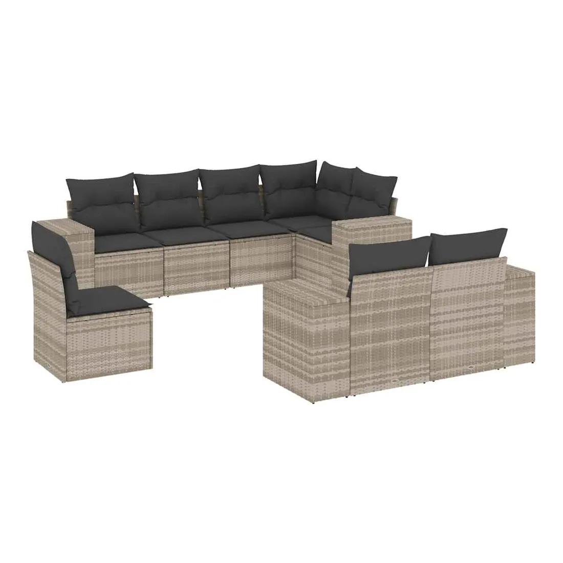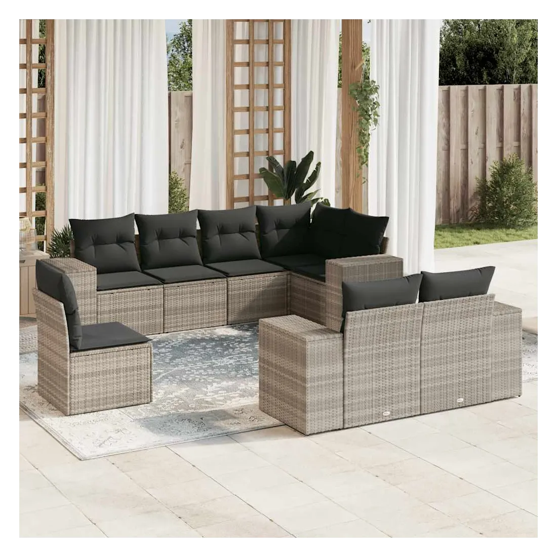 Cet ensemble de canapés de jardin est le complément parfait de votre arrière-cour, terrasse ou patio, offrant un espace confortable et accueillant pour discuter avec la famille et les amis ou simplement se détendre et profiter de l'extérieur. Matériau durable : la résine tressée, également connue sous le nom de poly rotin, est un matériau synthétique solide et nécessitant peu d'entretien qui ressemble au rotin naturel. Il est léger, facile à nettoyer et couramment utilisé pour les meubles d'extérieur en raison de sa durabilité et de ses propriétés de résistance aux intempéries.Fonction de rangement avec sac résistant à l'eau : le mobilier de jardin dispose d'un espace de rangement sous l'assise, complété par un sac résistant à l'eau pour ranger coussins, jouets et autres objets. Le sac intérieur peut être solidement fixé au mobilier d'extérieur grâce à des attaches auto-agrippantes pour plus de stabilité.Housse amovible et lavable : ces coussins de siège sont dotés de housses amovibles pour un lavage et un entretien faciles.Conception modulaire : cet ensemble de meubles d'extérieur a une conception modulaire, ce qui le rend complètement flexible et facile à déplacer, afin que vous puissiez créer un agencement de meubles d'extérieur personnalisé. Bon à savoir :Pour que vos meubles d'extérieur restent beaux, nous vous recommandons de les protéger avec une housse imperméable.