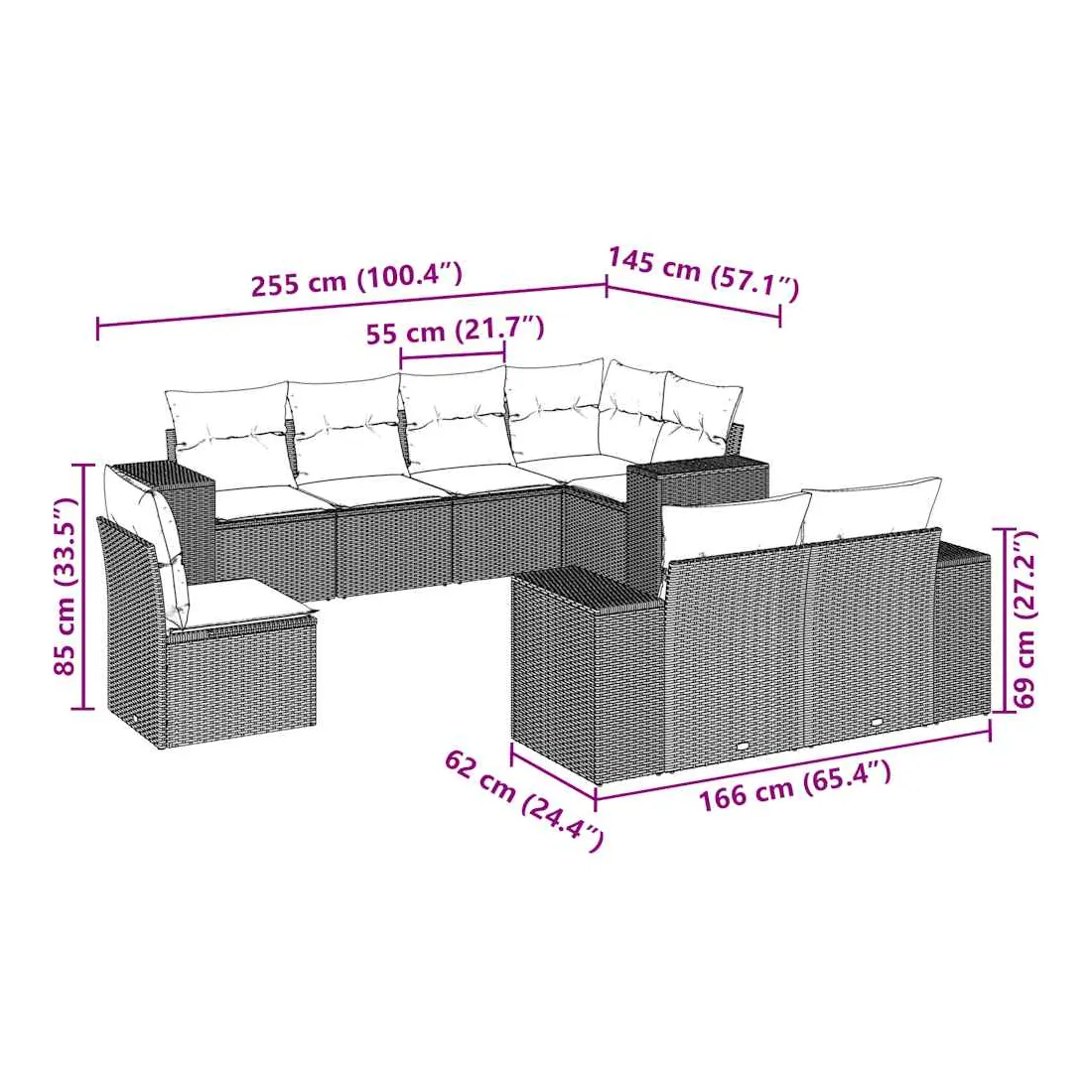 - Dimensions du coussin de dossier : 55 x 45 x 13 cm (L x l x é)