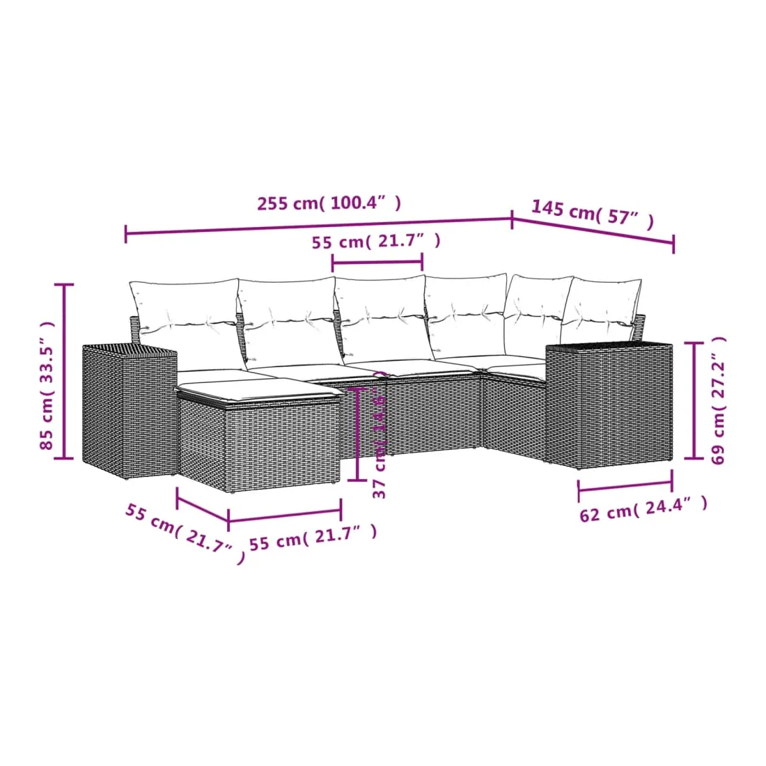 - Dimensions : 55 x 55 x 37 cm (l x P x H)