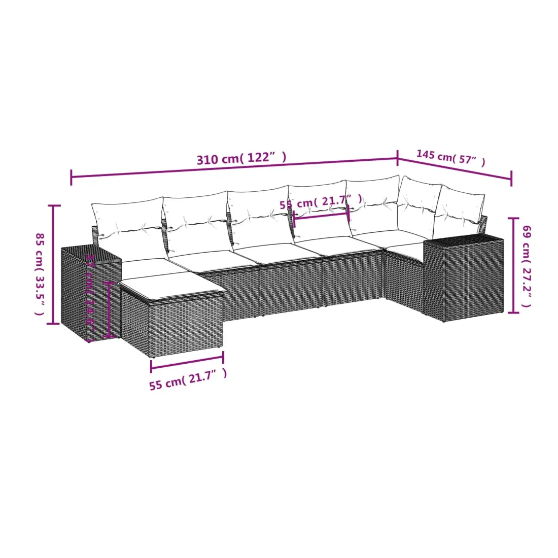 - Dimensions du coussin de dossier : 55 x 45 x 13 cm (L x l x é)